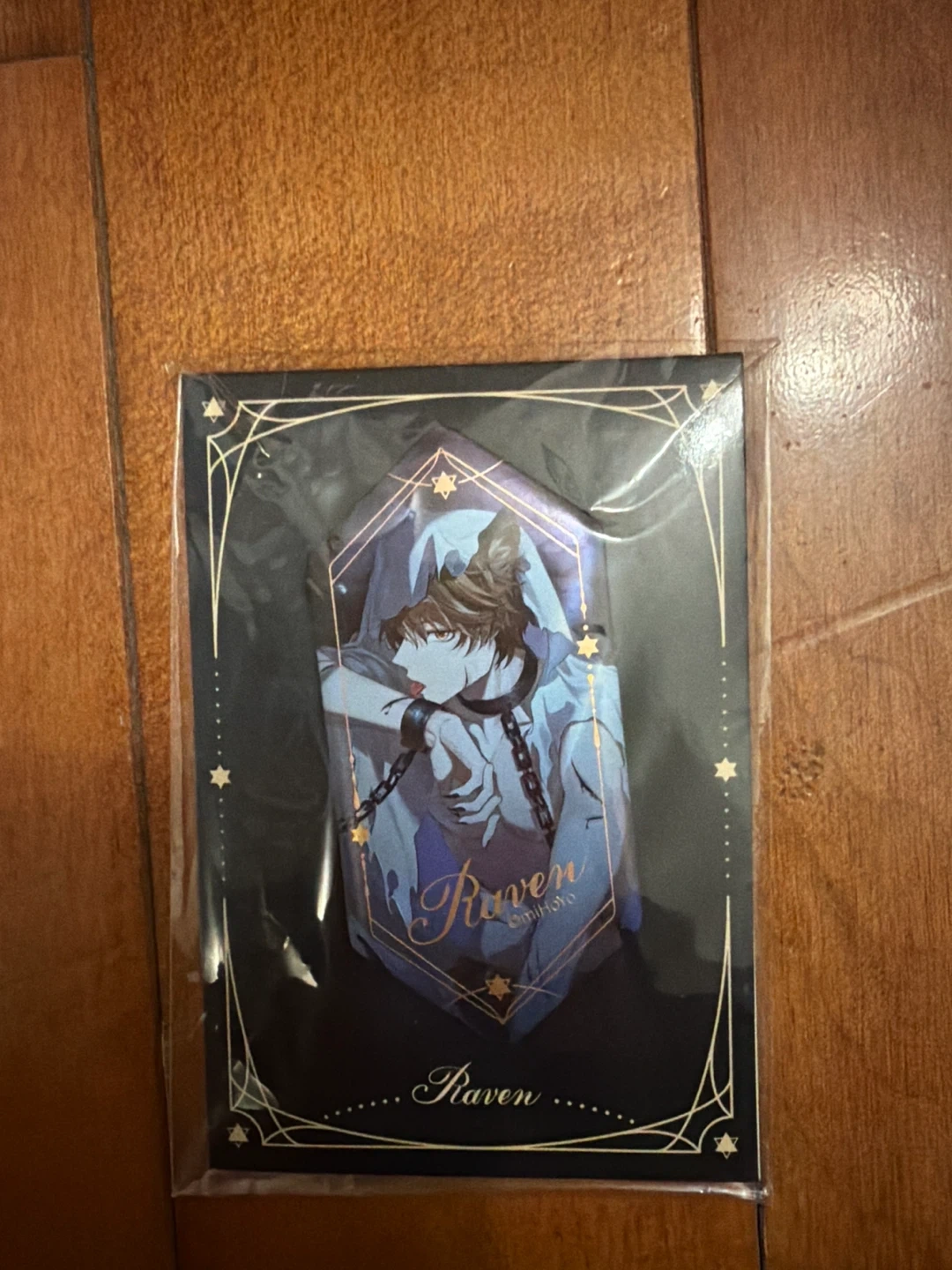 This is a 'Raven' character art card. It features a character illustration with chains. The card is still in its original packaging.