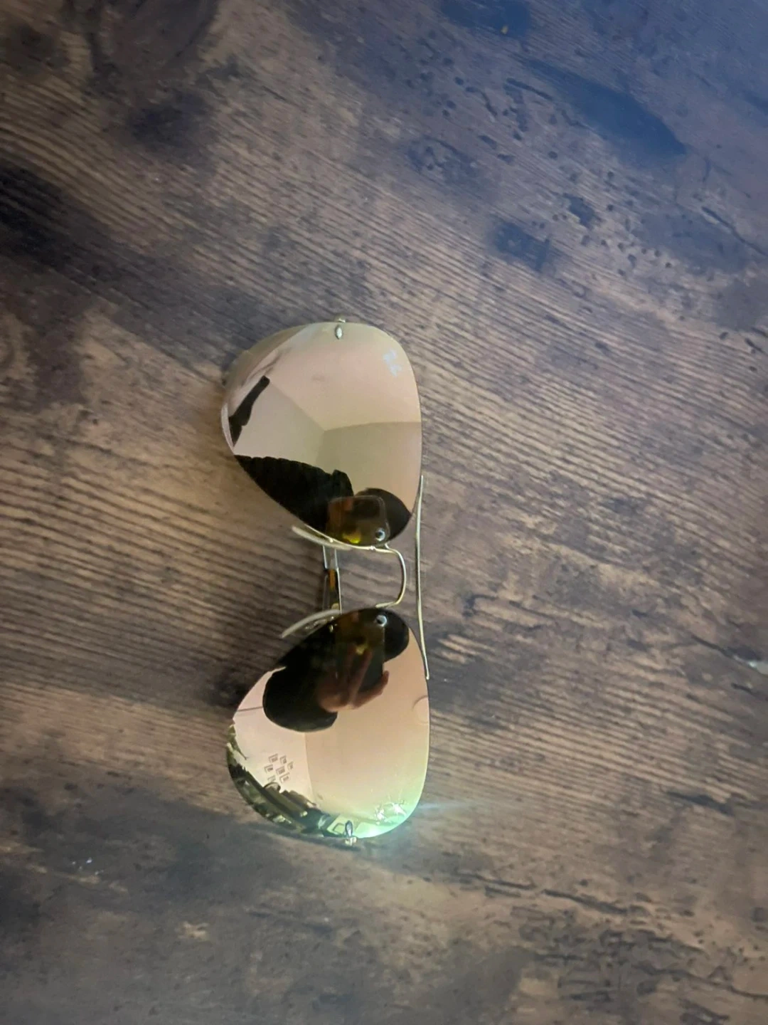 These Ray-Ban RB3449 aviator sunglasses feature a gold-tone metal frame with gradient pink mirror lenses. Includes original Ray-Ban case. Perfect for sunny days!