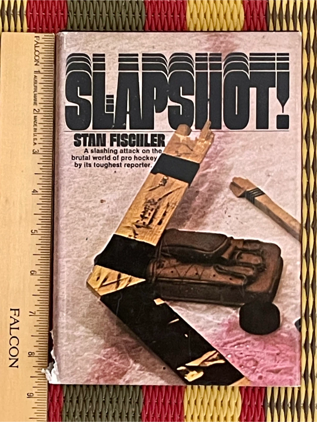 This is the book Slapshot! by Stan Fischler. It's a look at the brutal world of pro hockey. The book is written by its toughest reporter. Second printing 1973. 231 pages in very good to excellent condition.