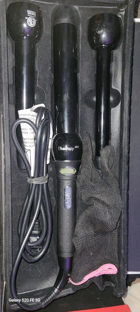 Hair curling wand set. Includes two different sized wands and heat resistant glove. Digital temperature control. will not answer to phone calls but will answer to texts or karrot messages 3068800560