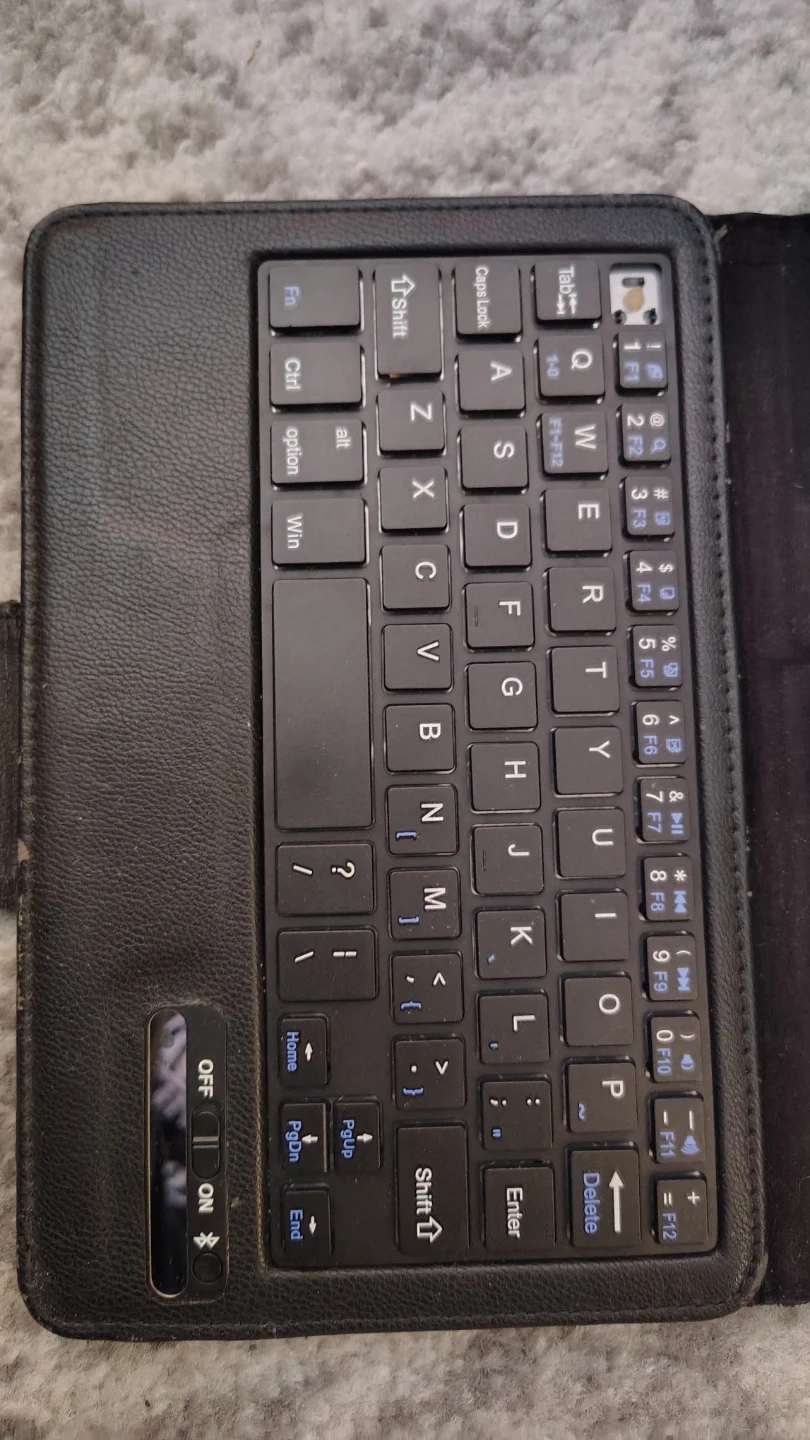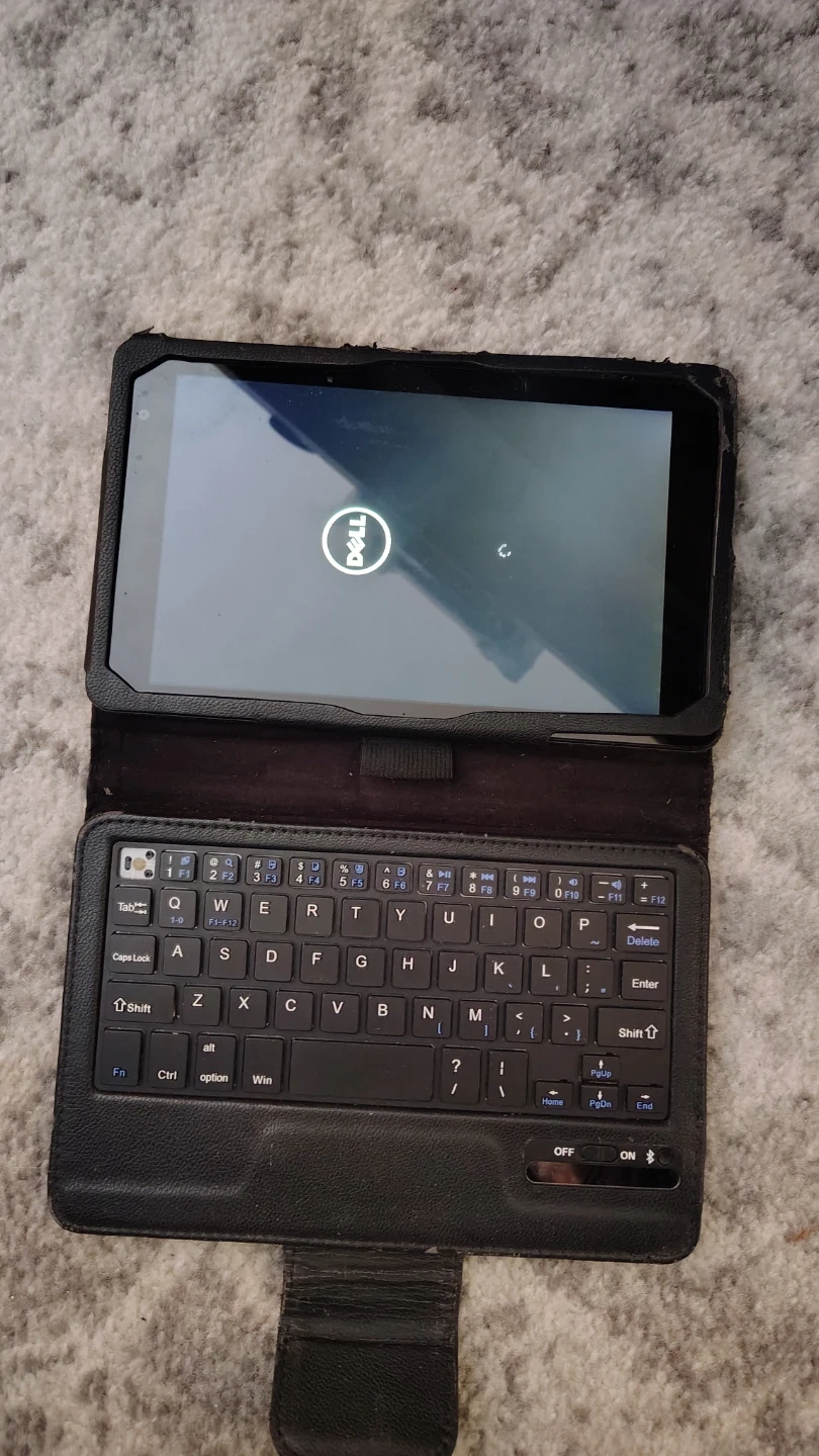 This is a Dell tablet in a black keyboard case. It's in working condition.