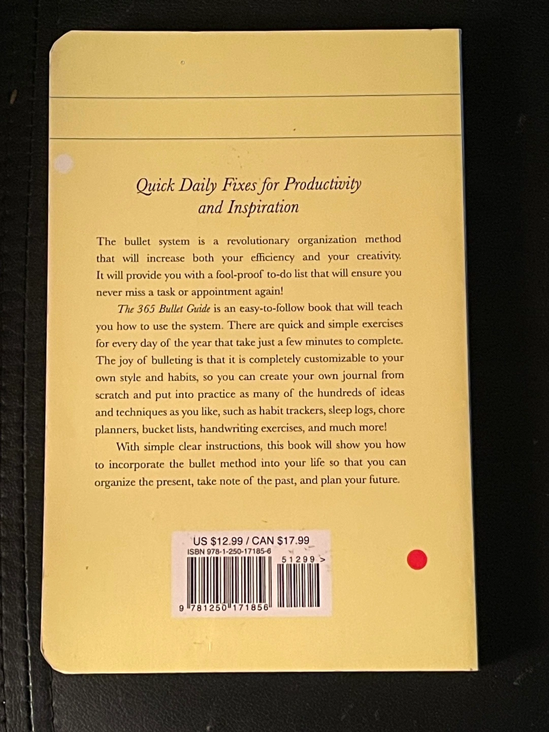 Organize your life creatively, one day at a time. Quick daily fixes for productivity and inspiration. Brand new condition except for a crease on top corner of cover. Pages are clean and unused.
