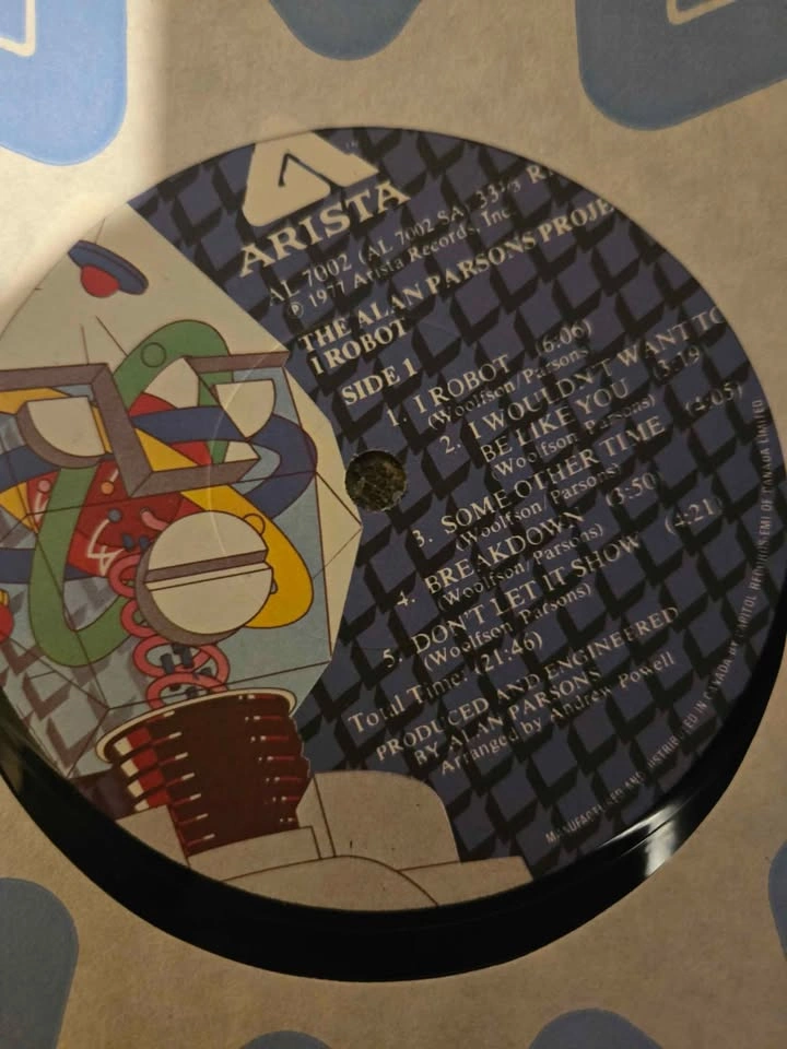Selling a used copy of The Alan Parsons Project's "I Robot" vinyl record, a classic album from 1977. The record is in good condition for its age, perfect for any vinyl collector or fan of the band. It has been well-preserved, especially considering its age. * **Artist:** The Alan Parsons Project * **Title:** I Robot * **Year:** 1977 This vinyl has been spinning tales and tunes since disco was king, and it's still ready to groove. If the ad's up, the record's available – let's make some music happen!