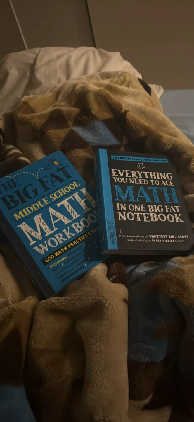 40Selling 'The Big Fat Middle School Math Workbook' and 'Everything You Need to Ace Math in One Big Fat Notebook'! The workbook includes 600 math practice exercises. The notebook contains notes borrowed from the smartest kid in class and double-checked by an award-winning teacher