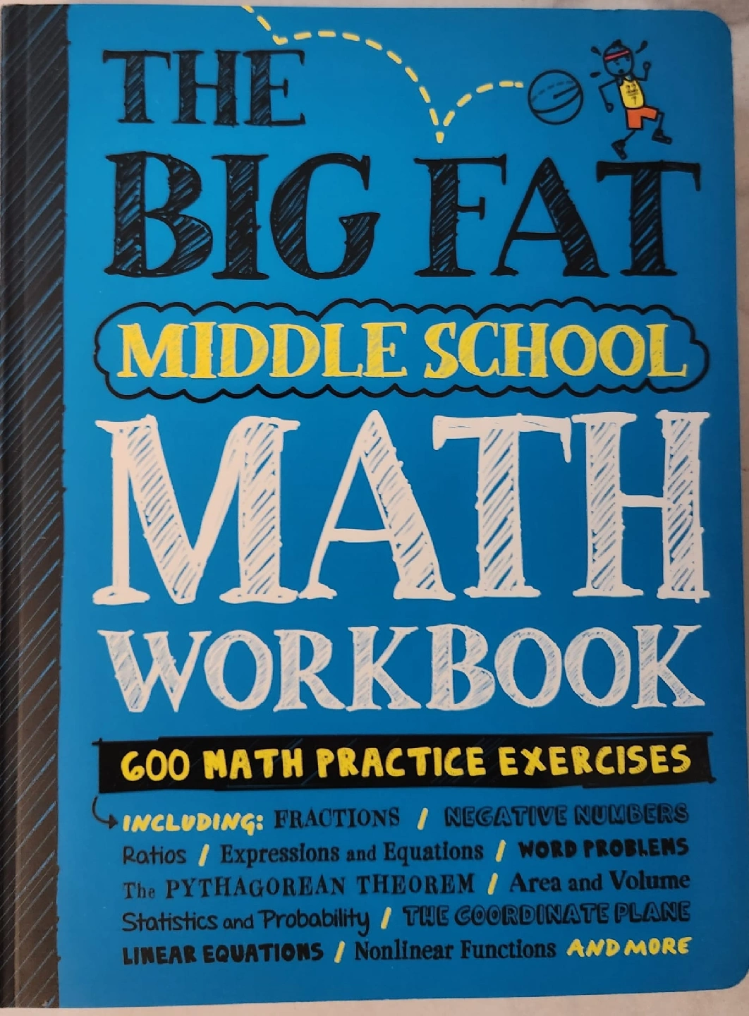 10Selling The Big Fat Middle School Math Workbook. It includes 600 math practice exercises covering fractions, negative numbers, ratios, expressions and equations, word problems, the Pythagorean theorem, area and volume, statistics and probability, the coordinate plane, linear equations, nonlinear functions, and more