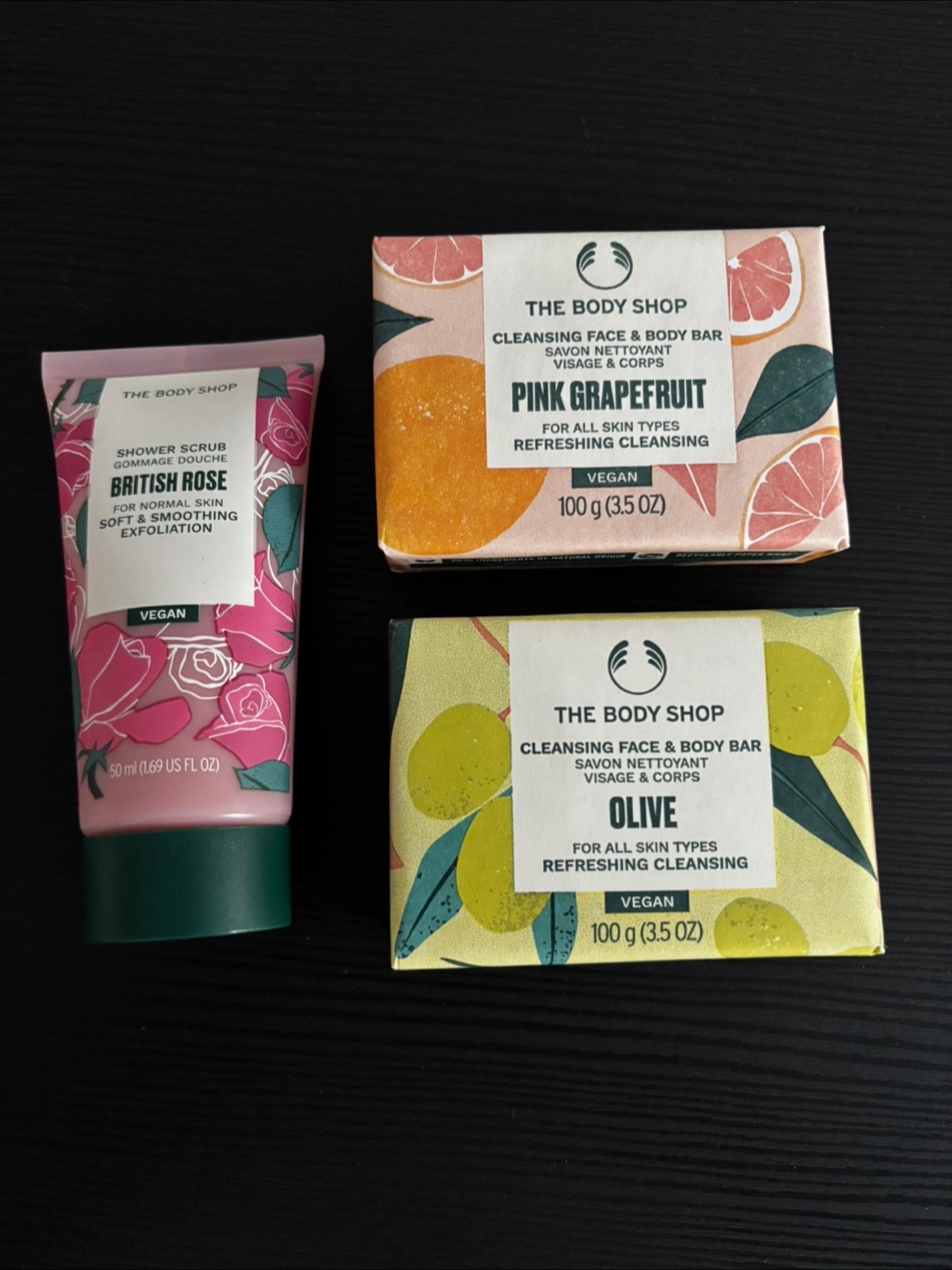 A collection of The Body Shop products! All items are travel-sized and perfect for trying out different scents and formulas! Great for a gift or to treat yourself All product purchase at 2025 Mother day and expired on end of 2026-2027. Shower Gels / Creams (60ml each) @$3 Shea Shampoo / Conditioner (60ml each) @$3 Tea Tree Skin Clearing Toner (60ml) @$3 Fresh plumping mask (15ml) @$3 Shower Scrub (50ml) @$3 Shampoo bar (60g) @$5 Shower bar (100g each) @$5 Skin tint & colour crayon are free to give away with any 2 or more items purchase. Or $35 could have it all.