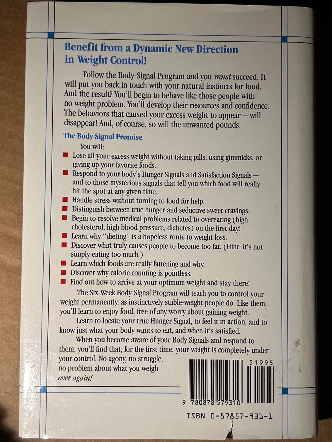 160Paperback book. Features 'The Six-Week Body-Signal Program' for permanent weight control. By Steven C. Strauss, M.D. and Gail North. Moving sale. See my other items. Pick up in Rundle, NE Calgary. If listed it is still available!