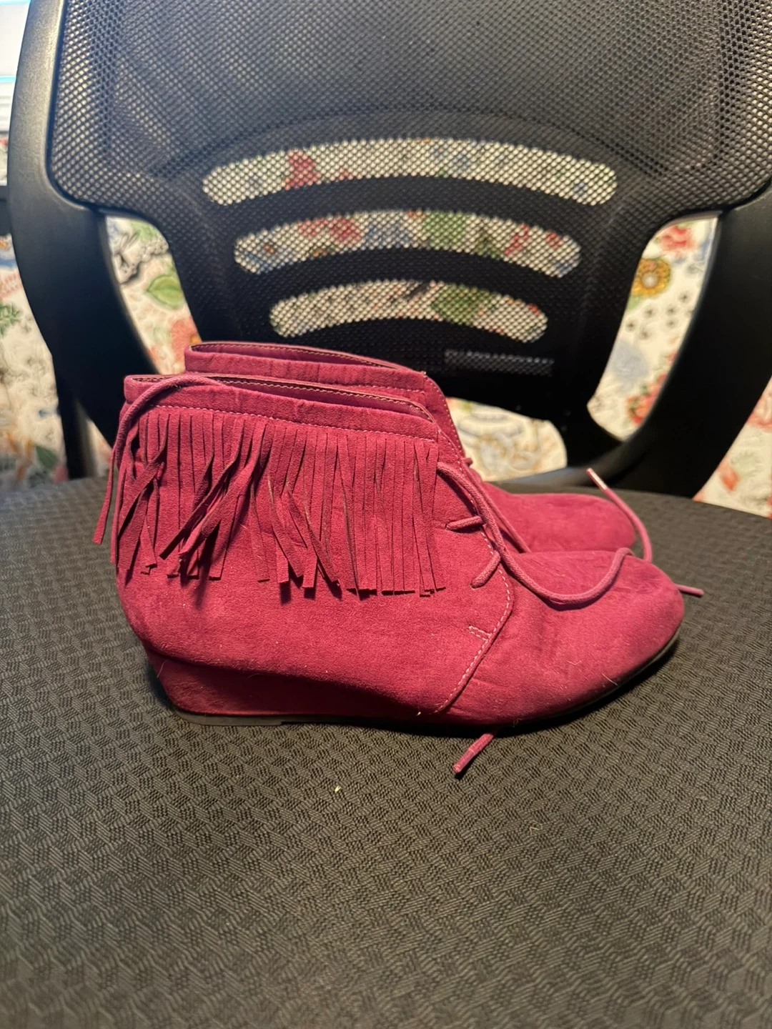 Buy & SellThe Children's Place Pink Fringe Boots - Size 4The Children's Place Pink Fringe Boots - Size 4$10Ruby fringe boots from the Children’s Place. They are size 4. They’re in excellent condition. $10 Pick up in auburn bayConditionLike new0 chats·0 favorites·5 viewsSELLERBrittAuburn Bay485 reviewsWHERE TO MEETCheck Location