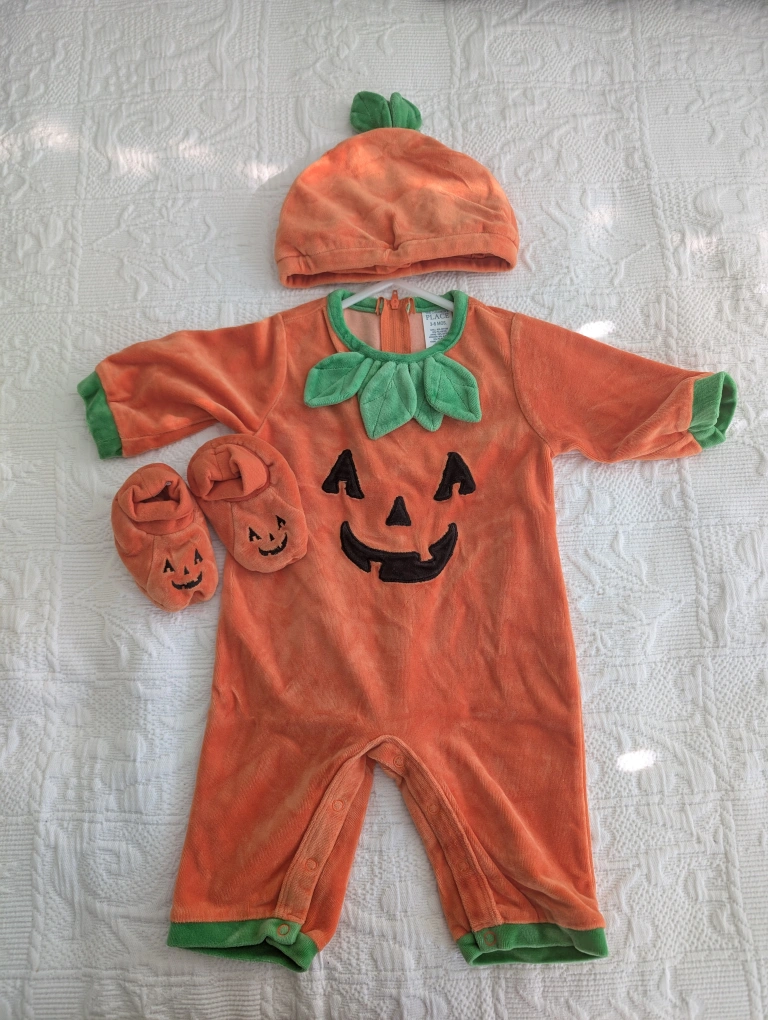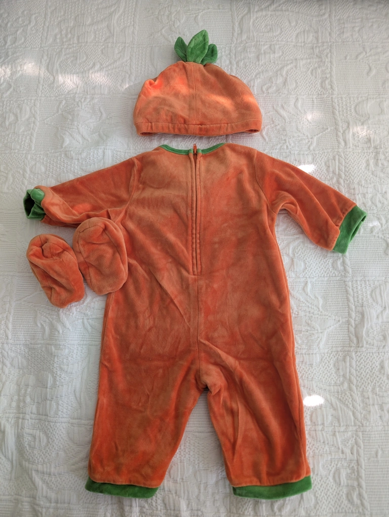 Adorable pumpkin costume from The Children's Place, perfect for your little one's first Halloween! This set includes a comfy jumpsuit, a cute hat, and matching booties. It's sized for 3-6 months. Available for Pick up / Meet Up in Major Mackenzie and Islington area of Woodbridge.