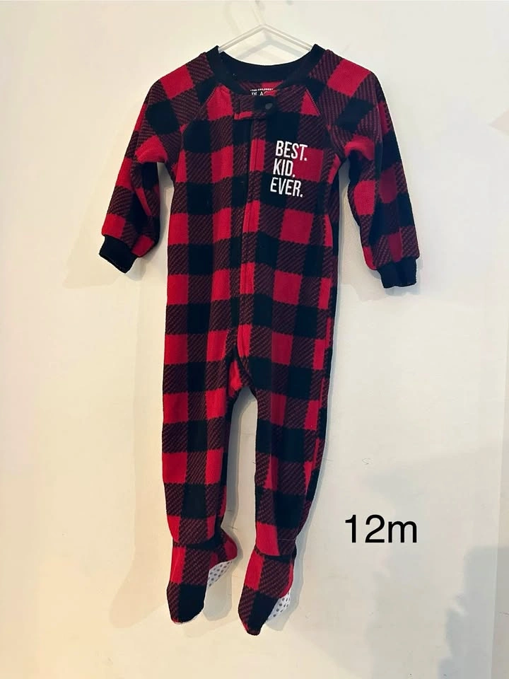 14Warm and comfy checkered footie. Features 'Best. Kid. Ever.' print. Ideal for cozy days. Pick up front and blue jays way/spadina