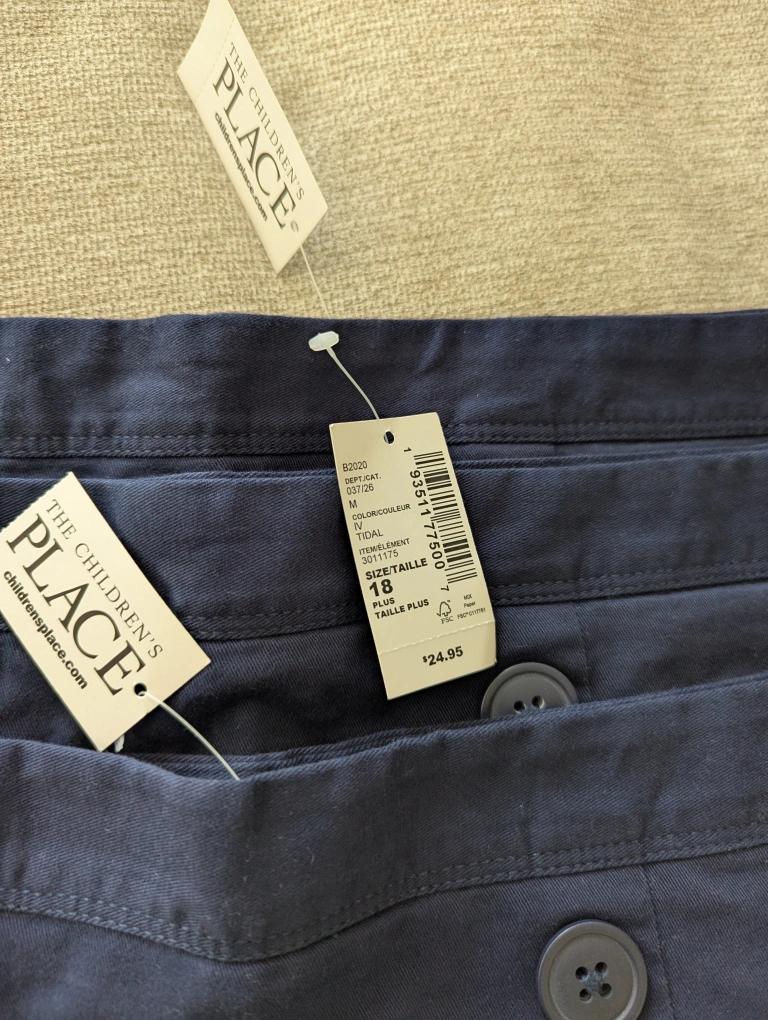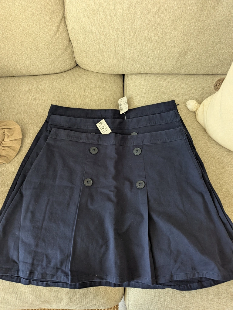 I'm selling a brand new skirt from The Children's Place! It's a size 18 in a lovely navy colour. It has a pleated design and cute button details. Originally bought for $24.95! Selling price of $12 each or 3 for $30.