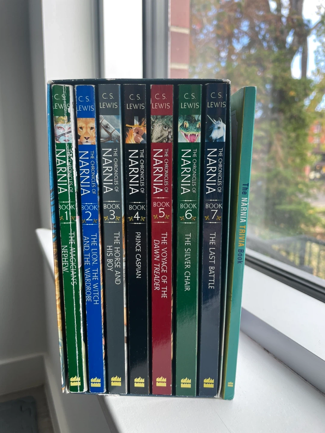 55Selling the complete Chronicles of Narnia series by C.S. Lewis! This beloved series is perfect for readers of all ages. Includes all seven books in the series. A great addition to any bookshelf! It is a boxed set!