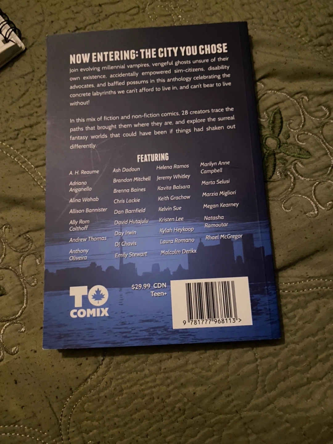 10Selling 'The City We Chose' comic book by TO Comix! It's a mix of fiction and non-fiction comics featuring 28 creators. Originally bought for $29.99 CDN. Check it out if you're interested in stories about millennial vampires and empowered sim-citizens In perfect condition Closest intersections are Taunton and Grandview Pick up only in Oshawa