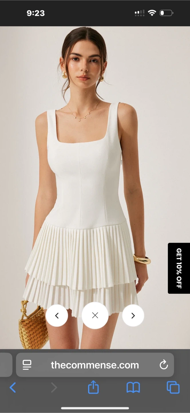 16This is a cute white mini dress from The Commense! It features a square neckline and a layered pleated skirt. Perfect for a night out or a special occasion! Composition: 92% Polyester, 8% Elastane Thickness: Regular Material: Woven Fabric Sleeve Length: Sleeveless Neckline: Square Neck Clothing Detail: Invisible Zipper Dresses Length: Short Stretch: Slight Stretch Fit Type: Regular Fit