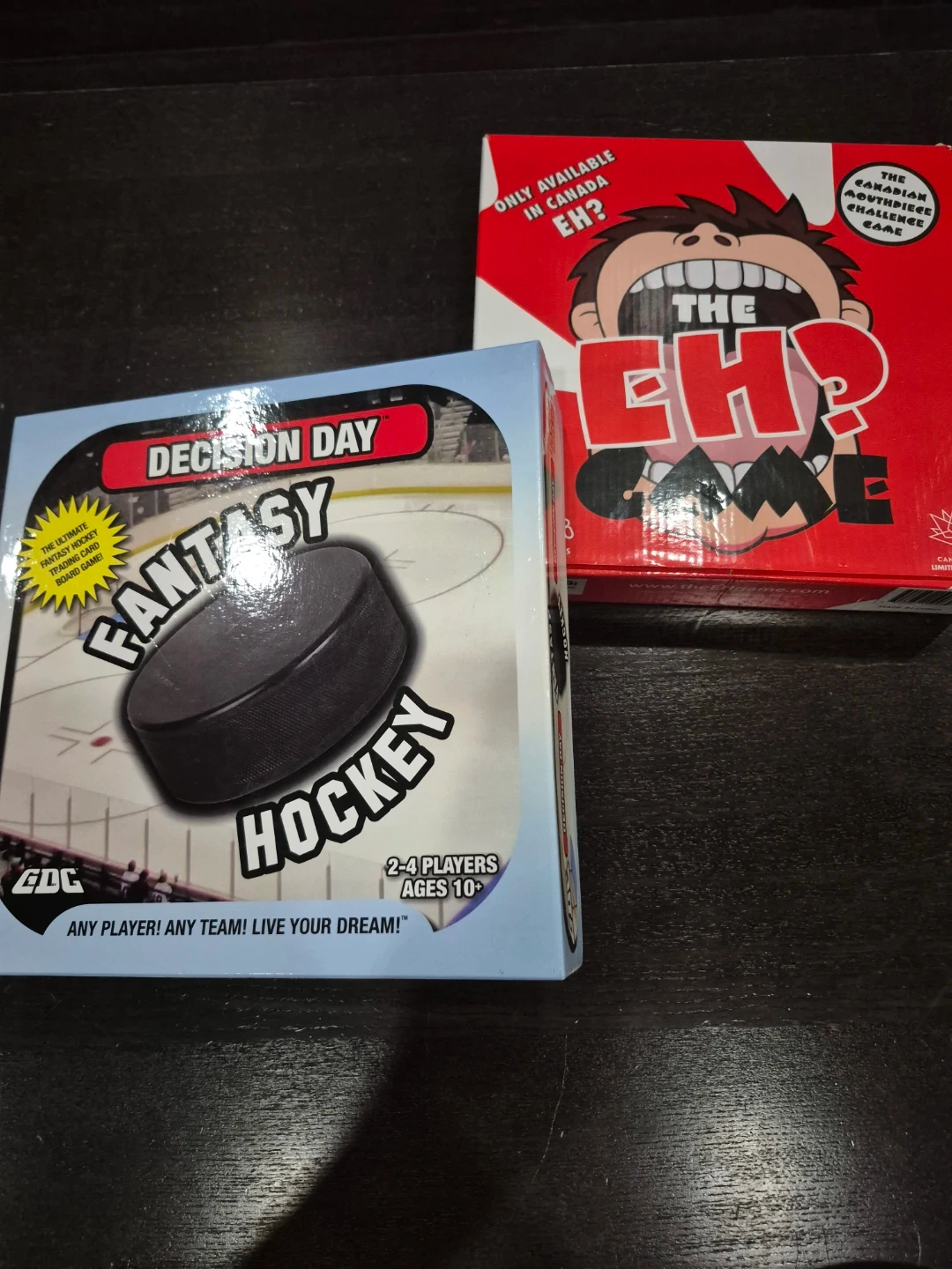 10Selling two fun board games perfect for game nights! The Eh? Game - Never used, however box has minor wear and is missing one kids’ mouthpiece, but all other parts are included. Still fully playable and great for laughs! Fantasy Hockey: Decision Day - Complete set, excellent condition, all pieces included and ready to play. $15 each or $25 for both.