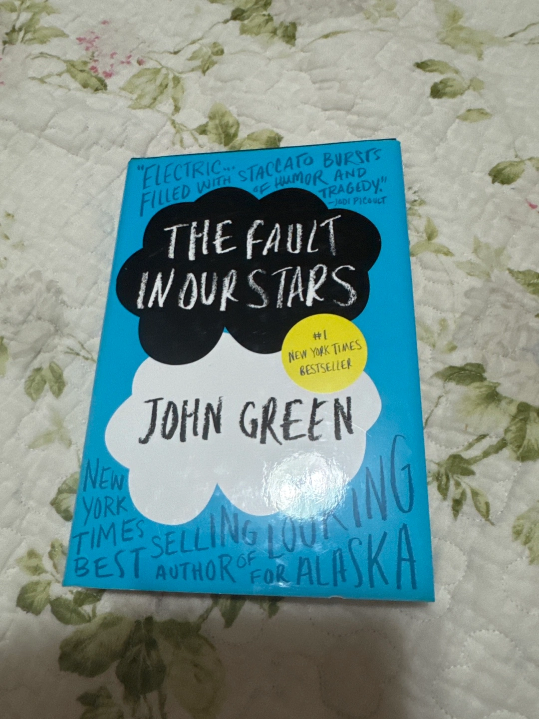 Selling a copy of "The Fault in Our Stars" by John Green! This book is a New York Times Bestseller and is known for its electric bursts filled with humor and tragedy. A great read for anyone looking for a touching story