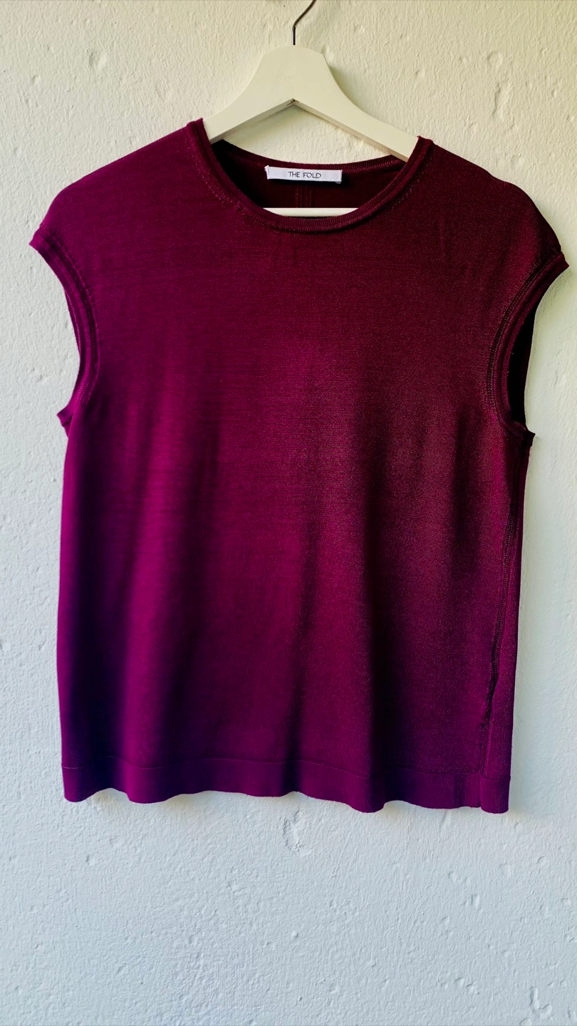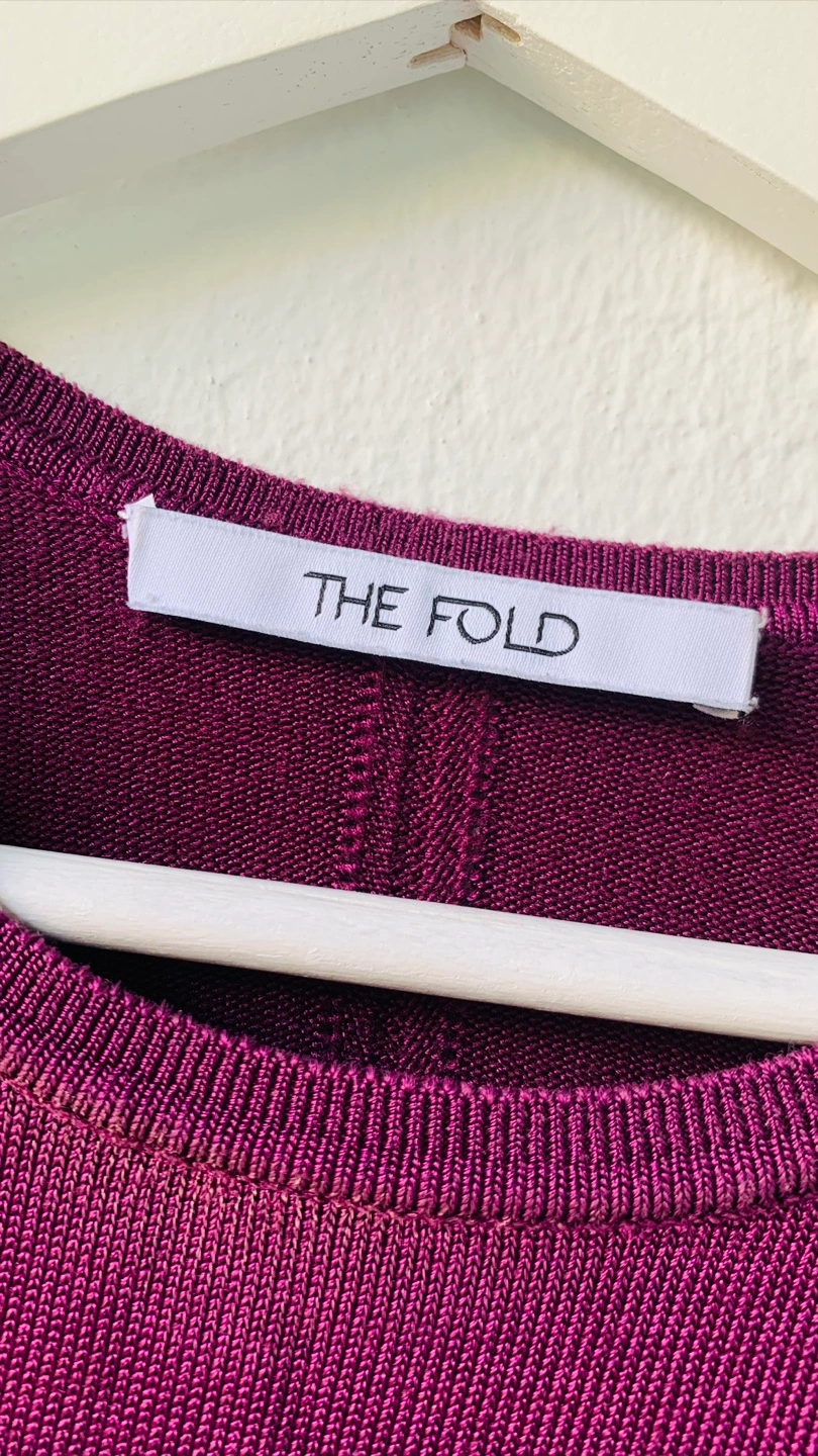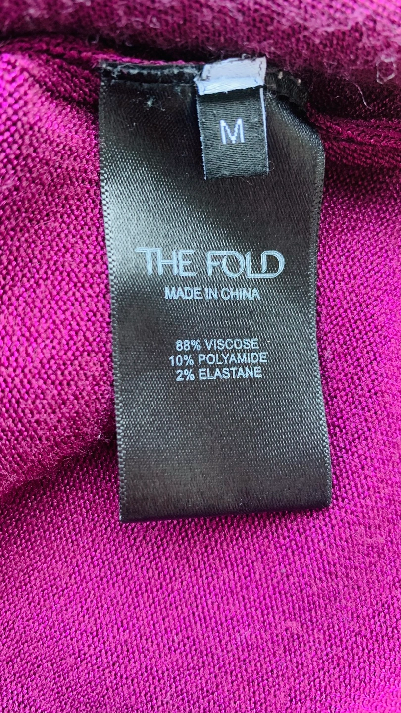 A lovely knit top from The Fold in a beautiful plum colour. It's a size M and made in China from 88% Viscose, 10% Polyamide, and 2% Elastane. Perfect for adding a touch of class to your wardrobe!