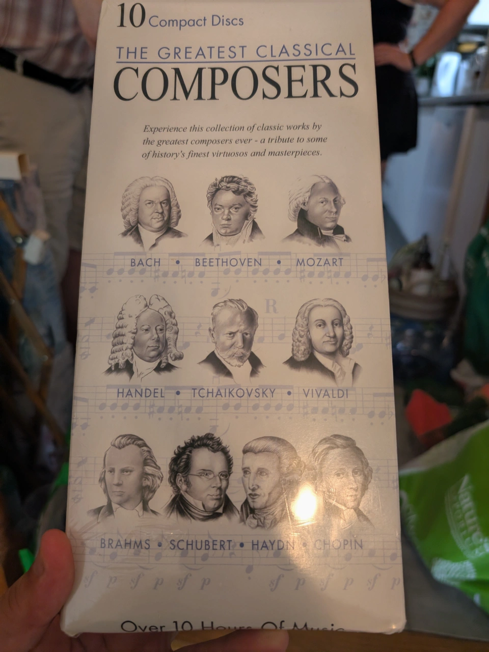 Selling a collection of 10 compact discs titled 'The Greatest Classical Composers'! Experience classic works by Bach, Beethoven, Mozart, Handel, Tchaikovsky, Vivaldi, Brahms, Schubert, Haydn, and Chopin. Over 10 hours of music included