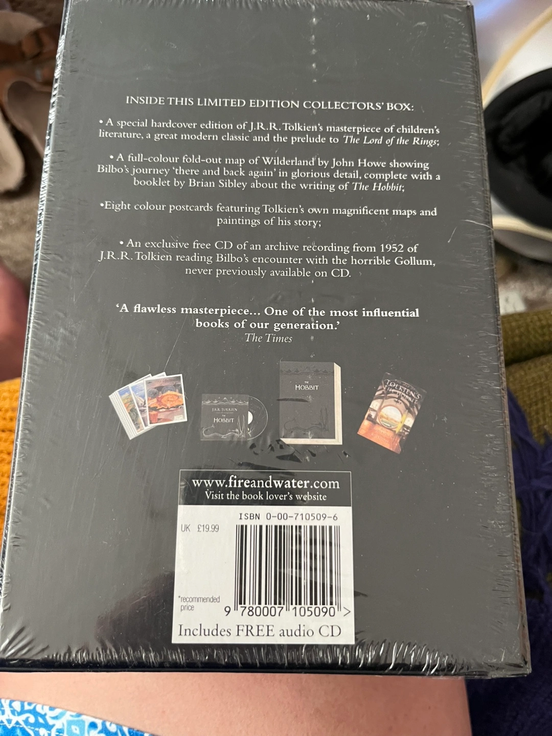 Rare Limited Edition Collector’s Box of J.R.R. Tolkien’s The Hobbit – brand new and still factory sealed. A perfect find for Tolkien fans and collectors. This set includes: • Special hardcover edition of The Hobbit • Full-colour fold-out map of Wilderland by John Howe • Eight colour postcards featuring Tolkien’s own maps and artwork • Booklet by Brian Sibley about the writing of The Hobbit • Free audio CD of J.R.R. Tolkien’s 1952 reading of Bilbo’s encounter with Gollum Condition: Mint / Brand New – Still in original shrink wrap. Pickup / Delivery: • Pickup in Etobicoke (just south of Pearson) Contact: Message through Karrot