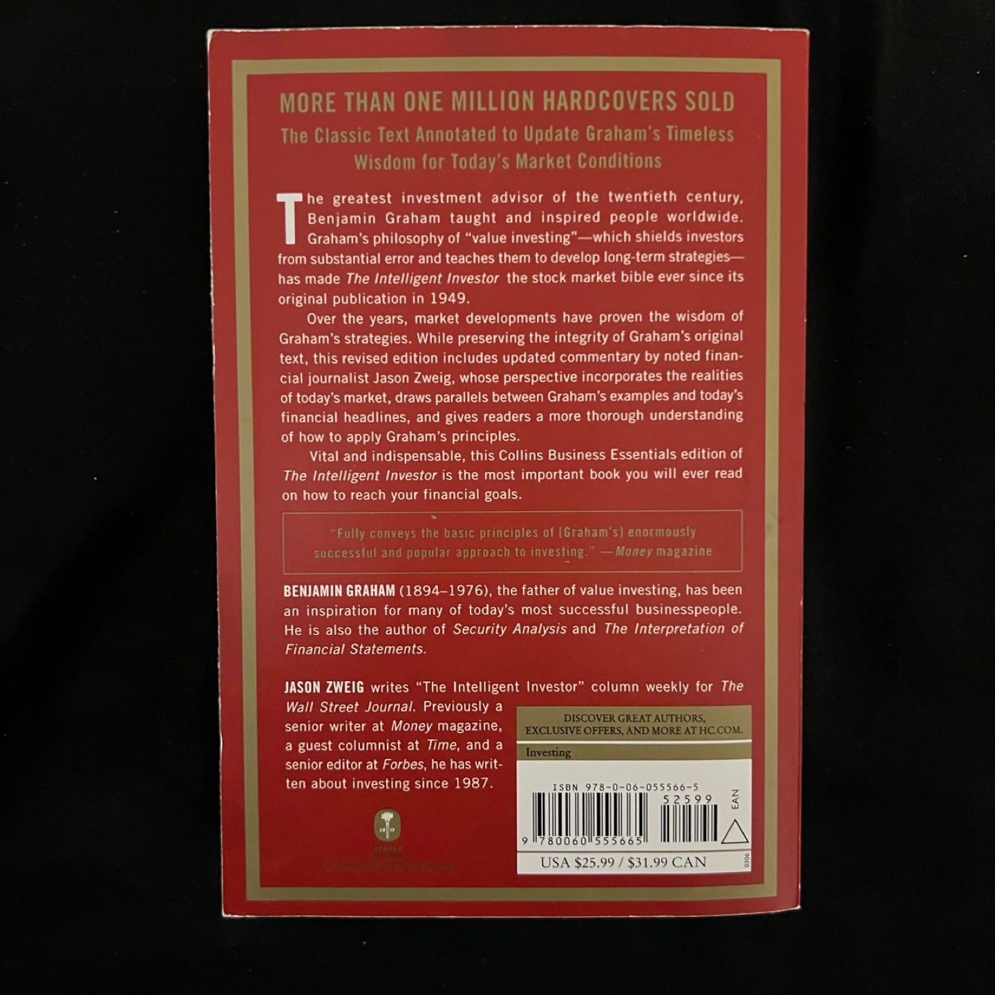 Selling "The Intelligent Investor" by Benjamin Graham, a classic text on value investing. This revised edition includes commentary by Jason Zweig. It's a must-read for anyone interested in learning about investing and the stock market! The book is in excellent condition and new. *NO TRADE; NO SHIPPING; ONLY CASH will be accepted*