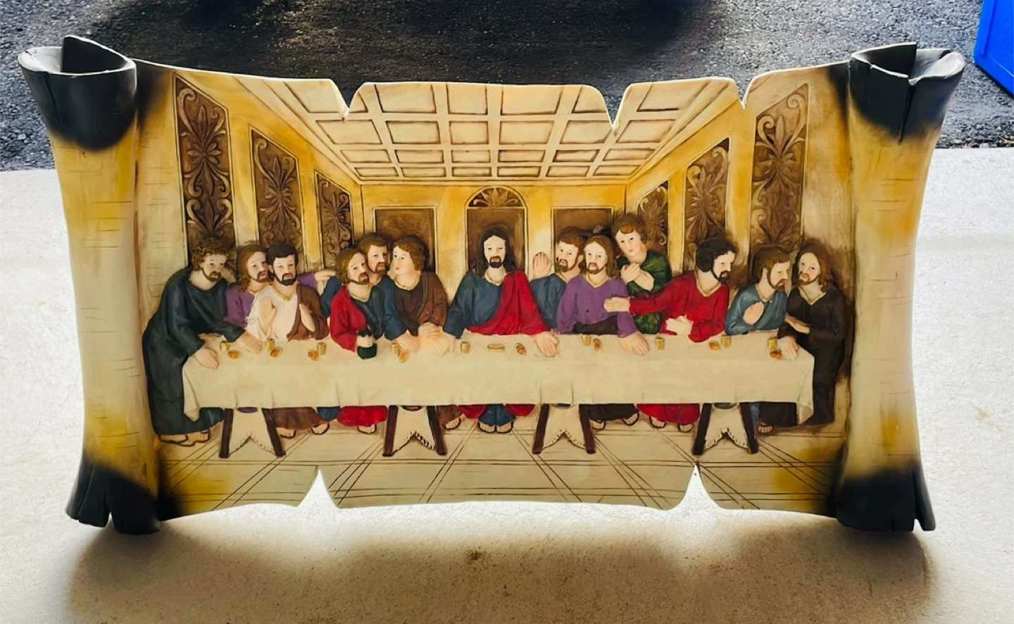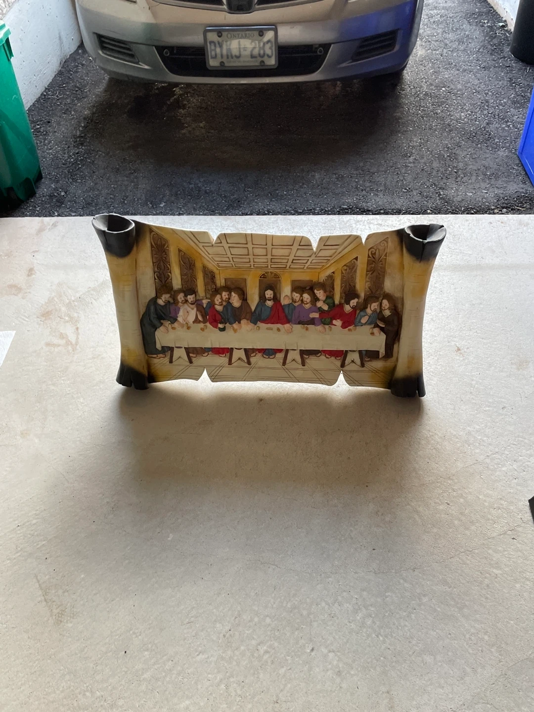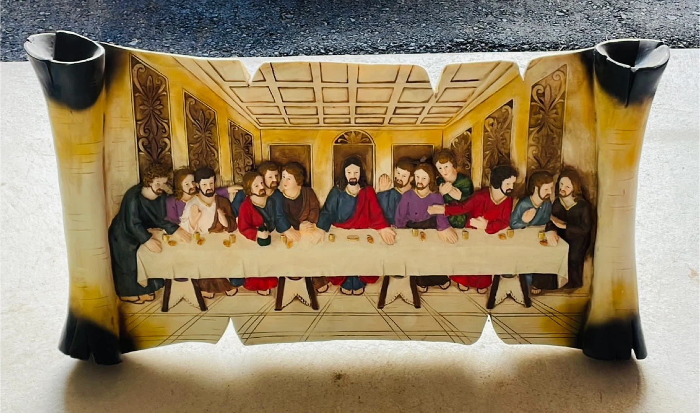 Beautiful wall art depicting The Last Supper. It has a stand on the back so it can be placed on a table or hung on a wall. It's in great condition and would look great in any home!