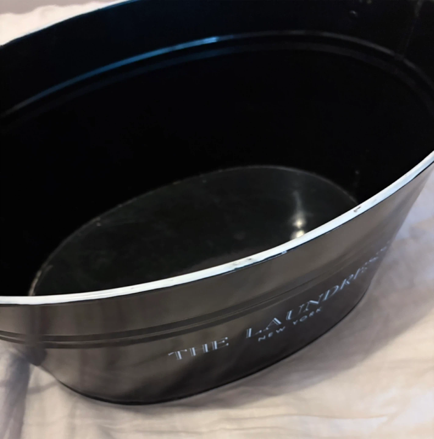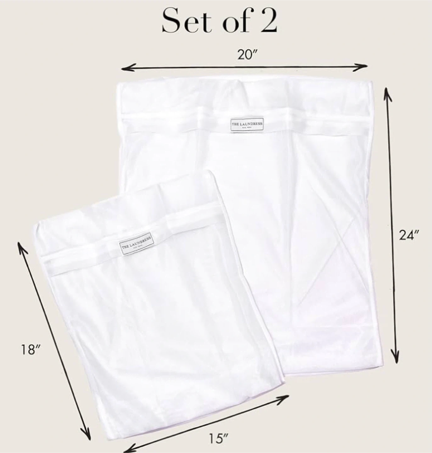 249The Laundress New York Bin & Bags Bundle Includes: The Laundress Mesh Bags - Set of 2 (One Large / One Small) 15 “ x 18 “ 20” x 24” Fine polyester mesh with zipper closures The Laundress New York Enamel Metal Bin with Handles Black coated oval shape enamel bin for laundry. Dimensions: 16.75 in L (19.5 in with handles) x 12.25 in w x 7.5 in h Dimensions at the Base: 13.75 in L x 10 in W