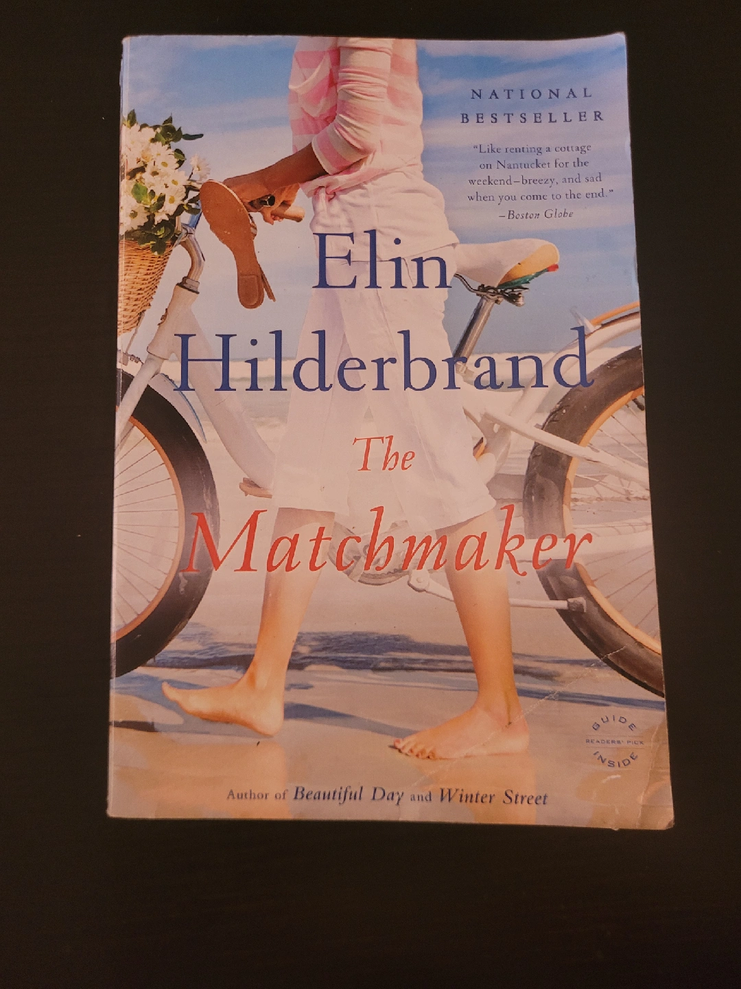 Selling "The Matchmaker" by Elin Hilderbrand! It's a Back Bay Books edition. The cover features a beachy scene with a bicycle. The book is a national bestseller and perfect for some light reading. Originally, it was priced at $19.00 CAD