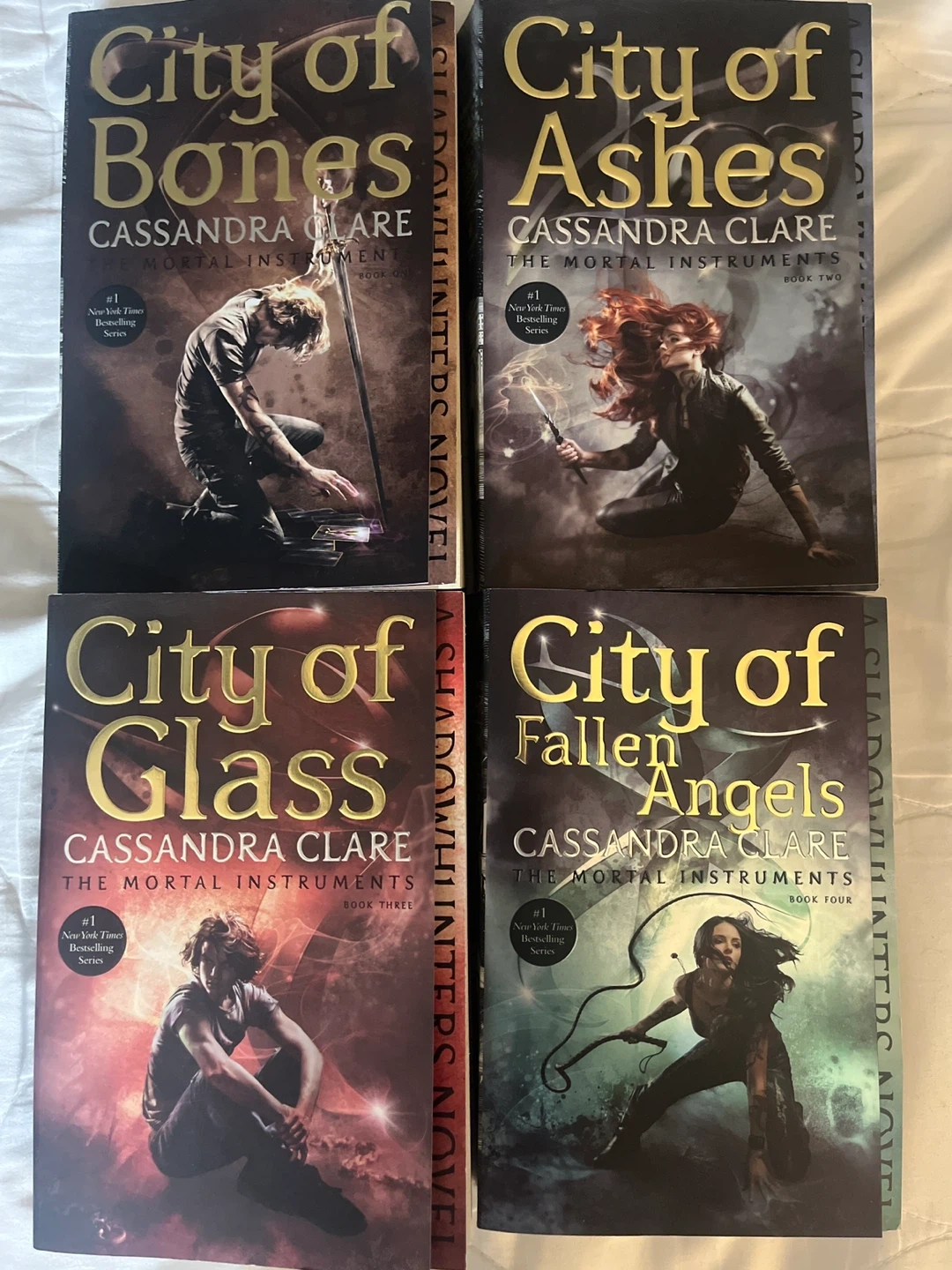 Selling the first four books in The Mortal Instruments series by Cassandra Clare: - City of Bones - City of Ashes - City of Glass - City of Fallen Angels Great for fans of young adult fantasy!