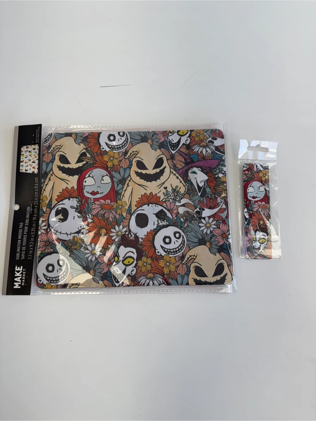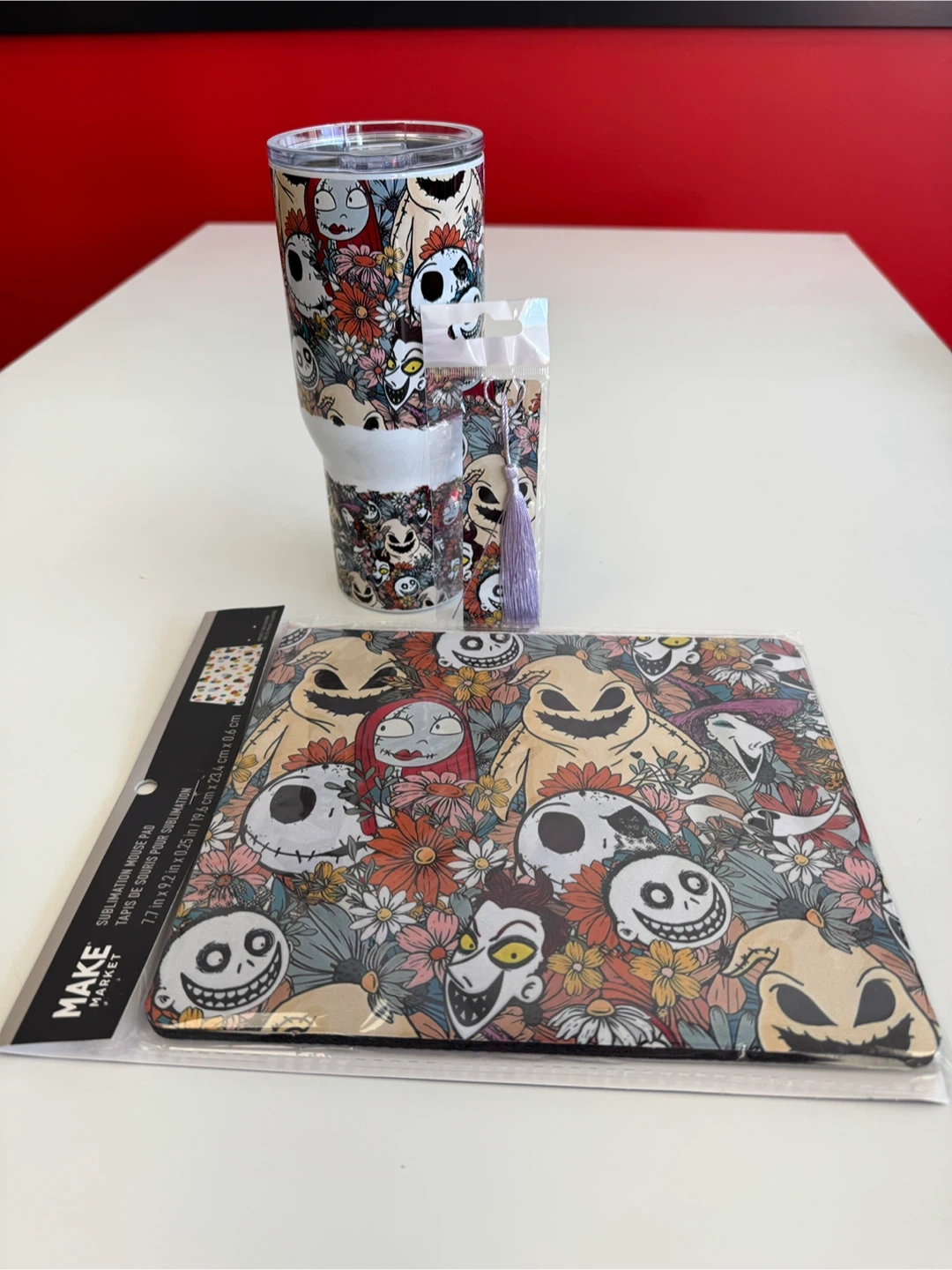 15Selling a fun set featuring characters from The Nightmare Before Christmas. Includes: 1 Mousepad, size: 7.7 x 9.2 x 0.25 in 1 25 oz Tumbler 1 Bookmark. Perfect for fans, collectors, or gifting π Items can be purchased individually as well.