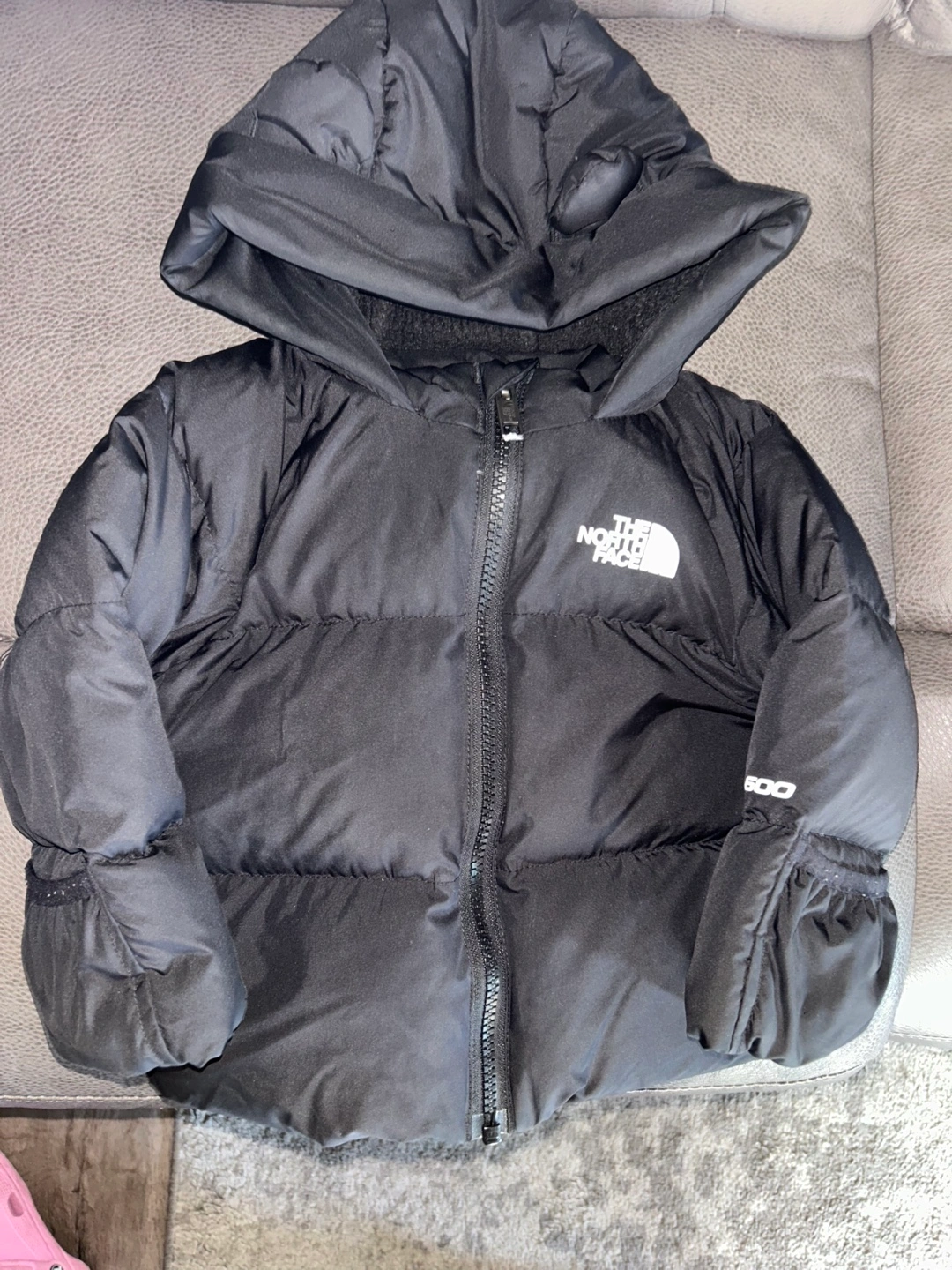 Keep your little one warm with this adorable The North Face baby puffer jacket! It's in great condition and perfect for the colder months. Size is 6-12 months.