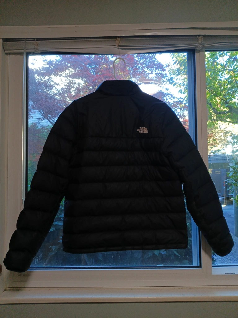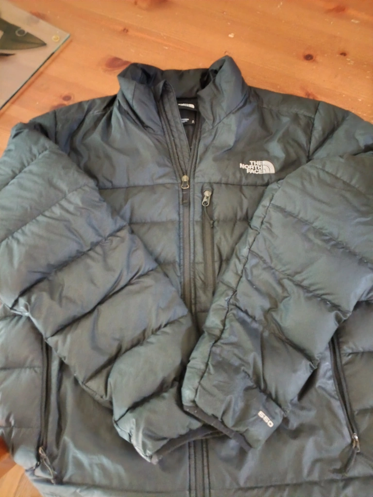 Selling a gently used The North Face down puffer jacket in size medium. It's black and has the classic North Face logo on the chest. Perfect for staying warm during the winter!