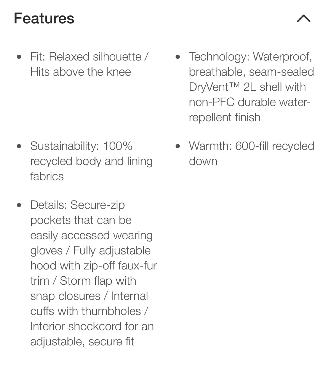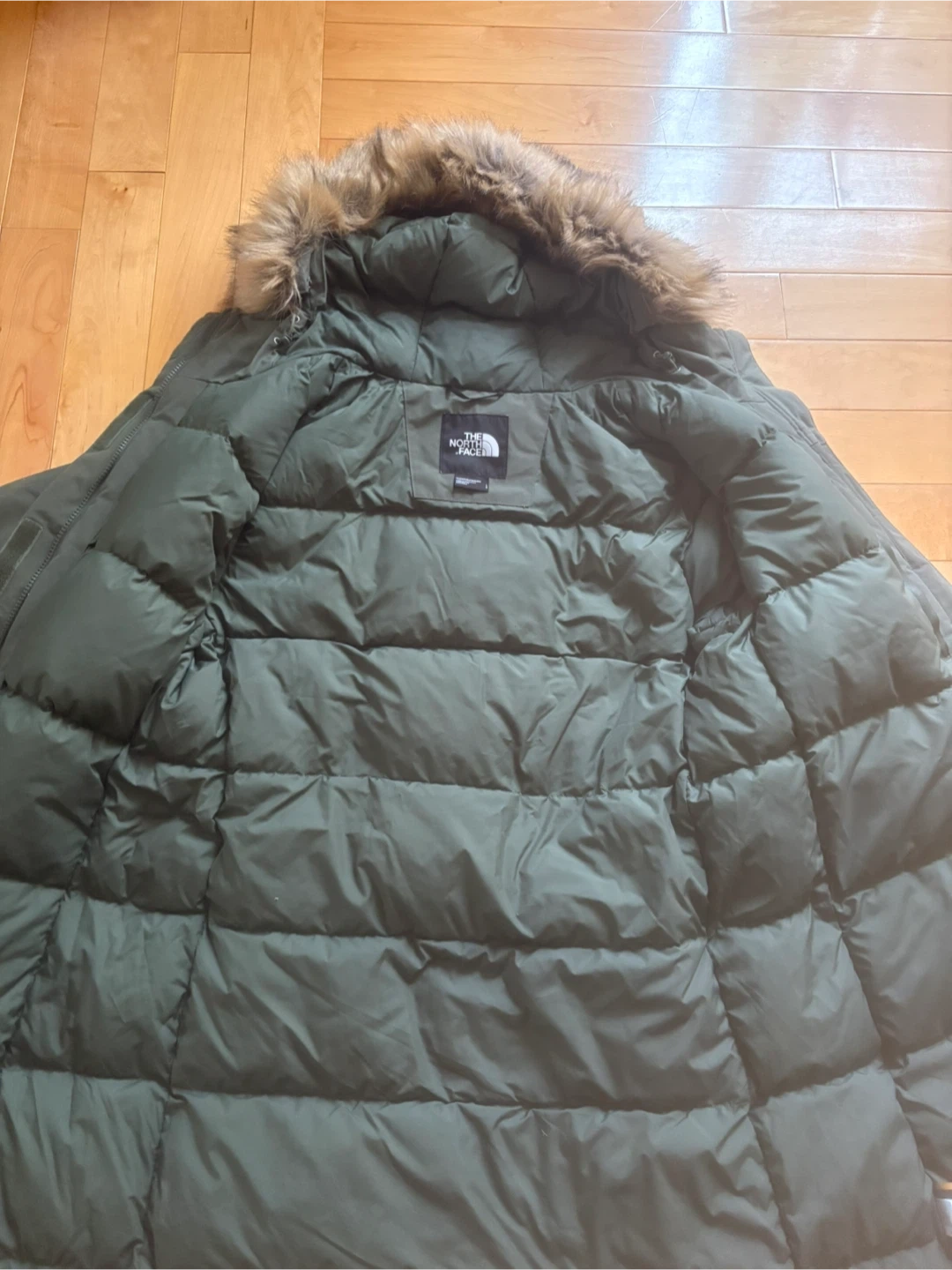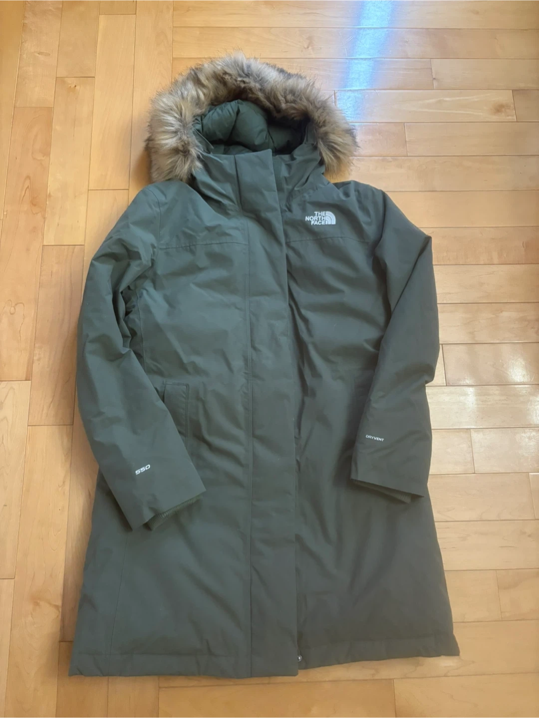 10Selling a gently used The North Face parka in olive green colour, size large. It's a DryVent 2L shell with a non-PFC durable water-repellent finish, so it's waterproof and breathable. The parka has a relaxed silhouette and hits above the knee. It's filled with 600-fill recycled down, perfect for staying warm! It also features a fully adjustable hood with a zip-off faux-fur trim, secure-zip pockets, internal cuffs with thumbholes, and an interior shockcord for a secure fit