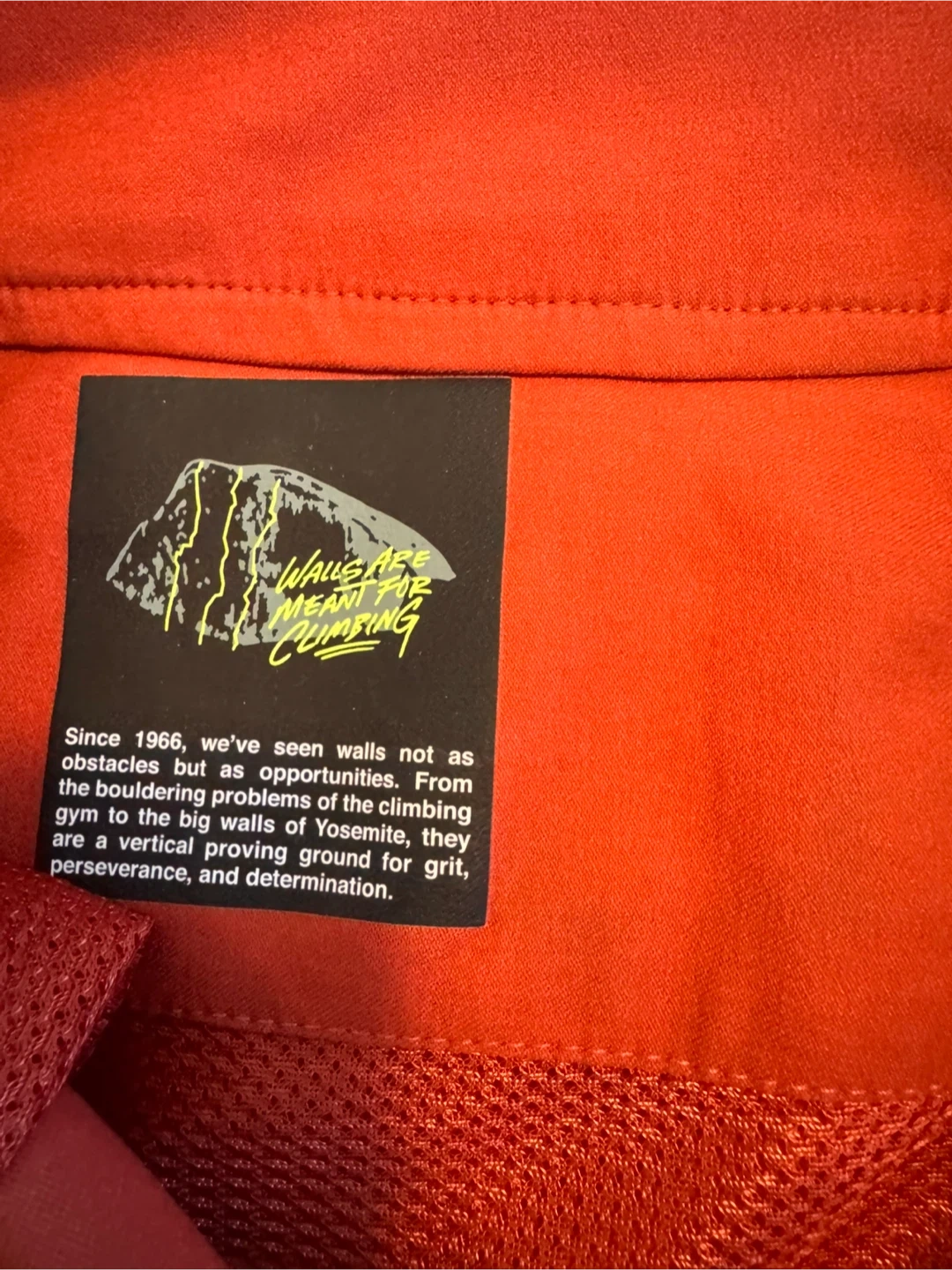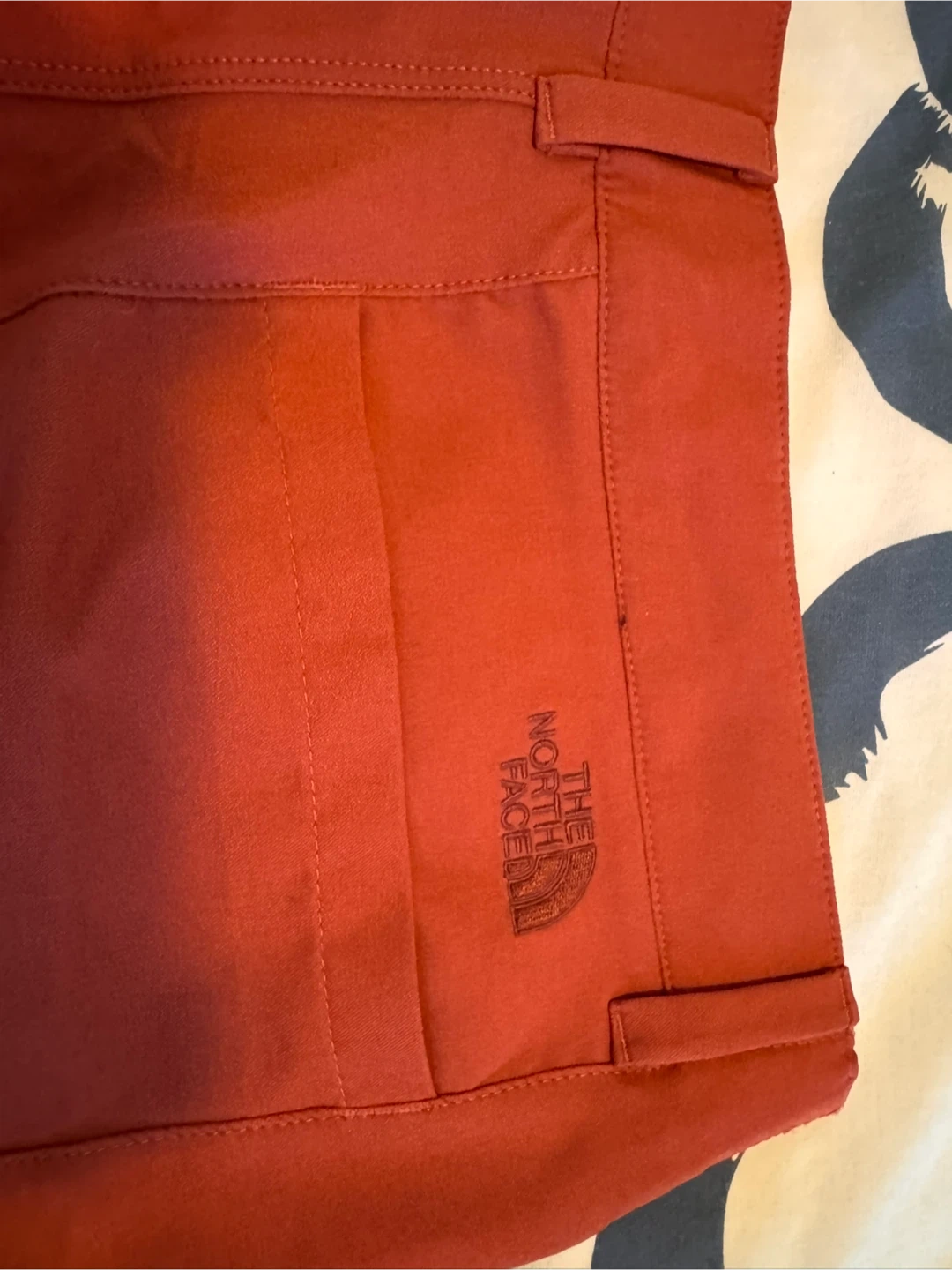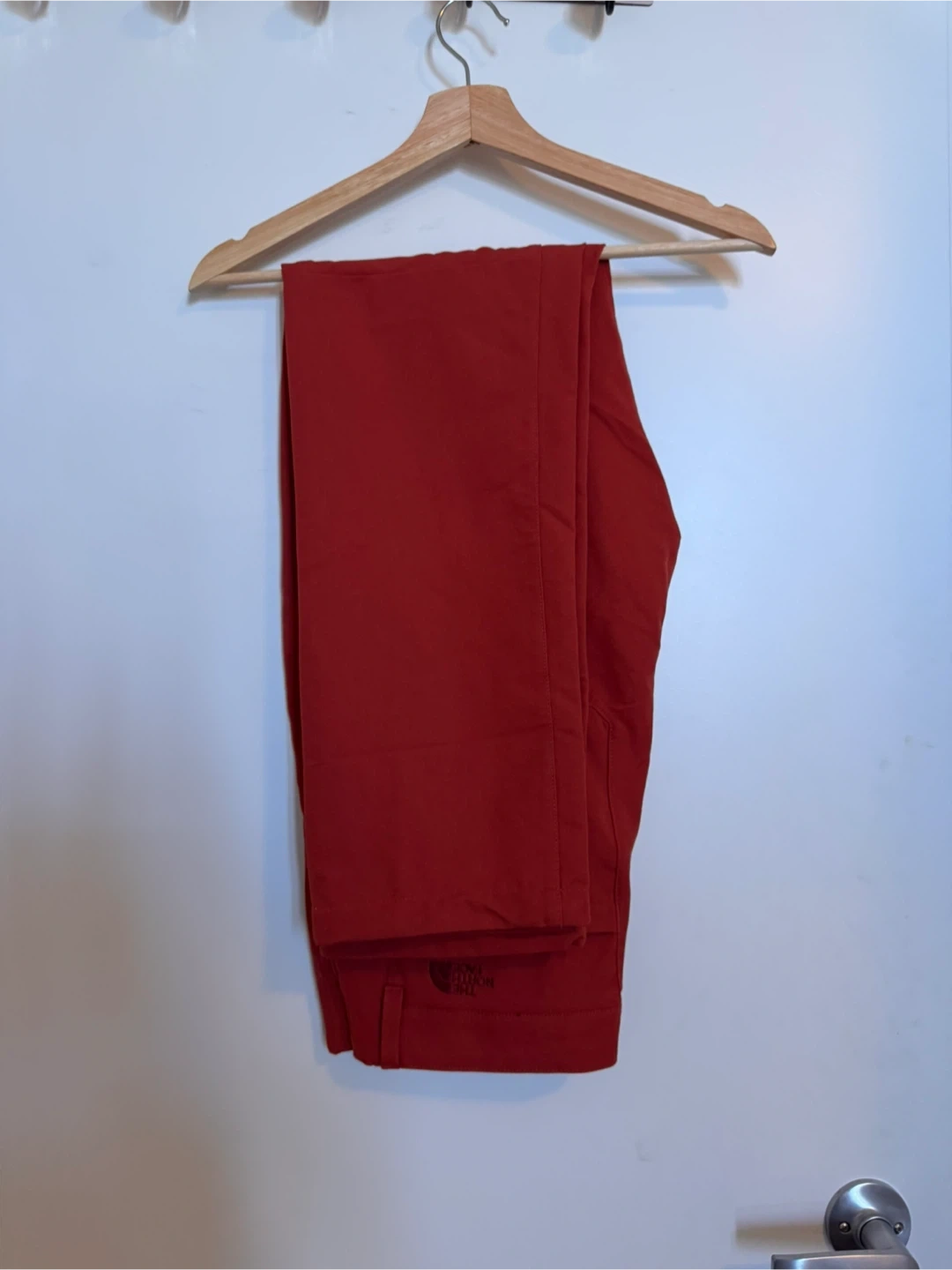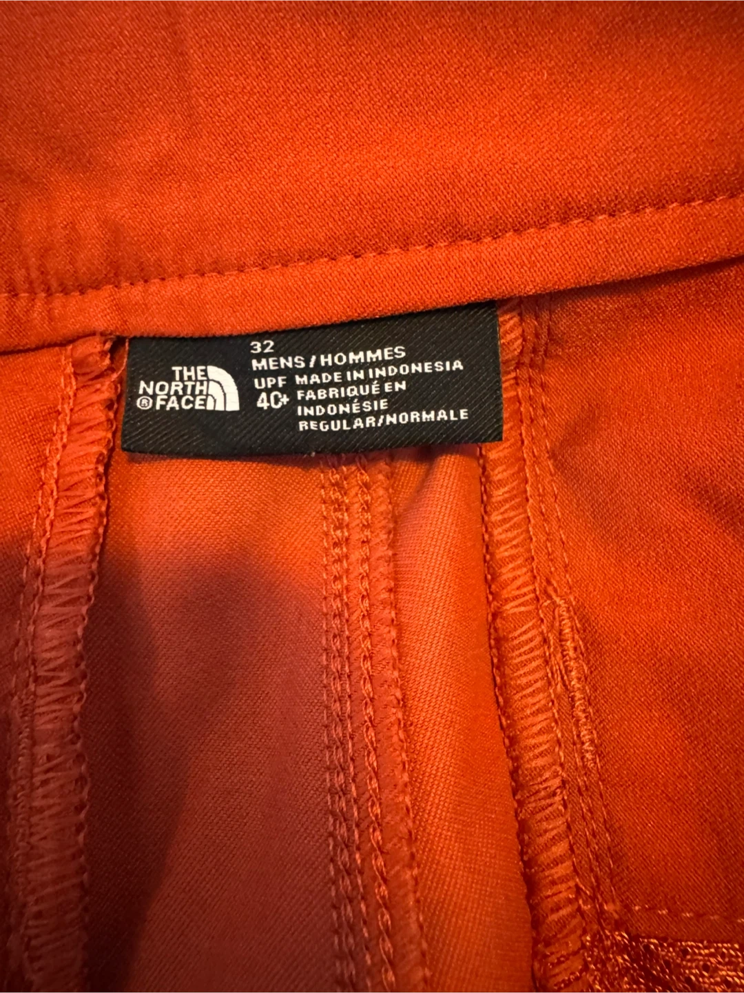Here are some The North Face climbing pants in size 32. They're a nice reddish-orange colour and in good condition. The label says 'Walls are meant for climbing'! Perfect for anyone who loves bouldering or hitting the climbing gym
