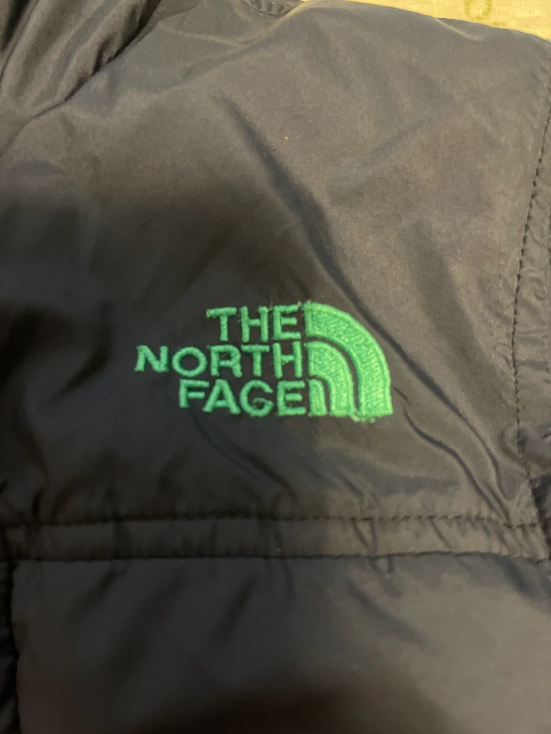 65Selling a The North Face puffer jacket. It's in great condition and ready to keep you warm! The jacket is navy blue with a bright green interior lining and logo.