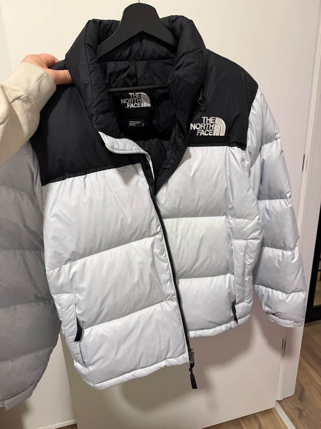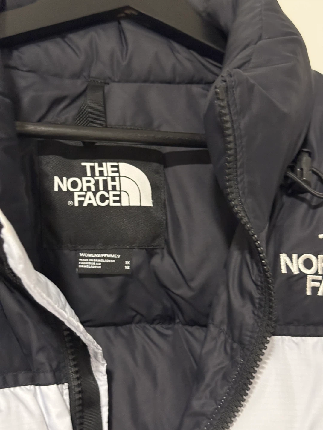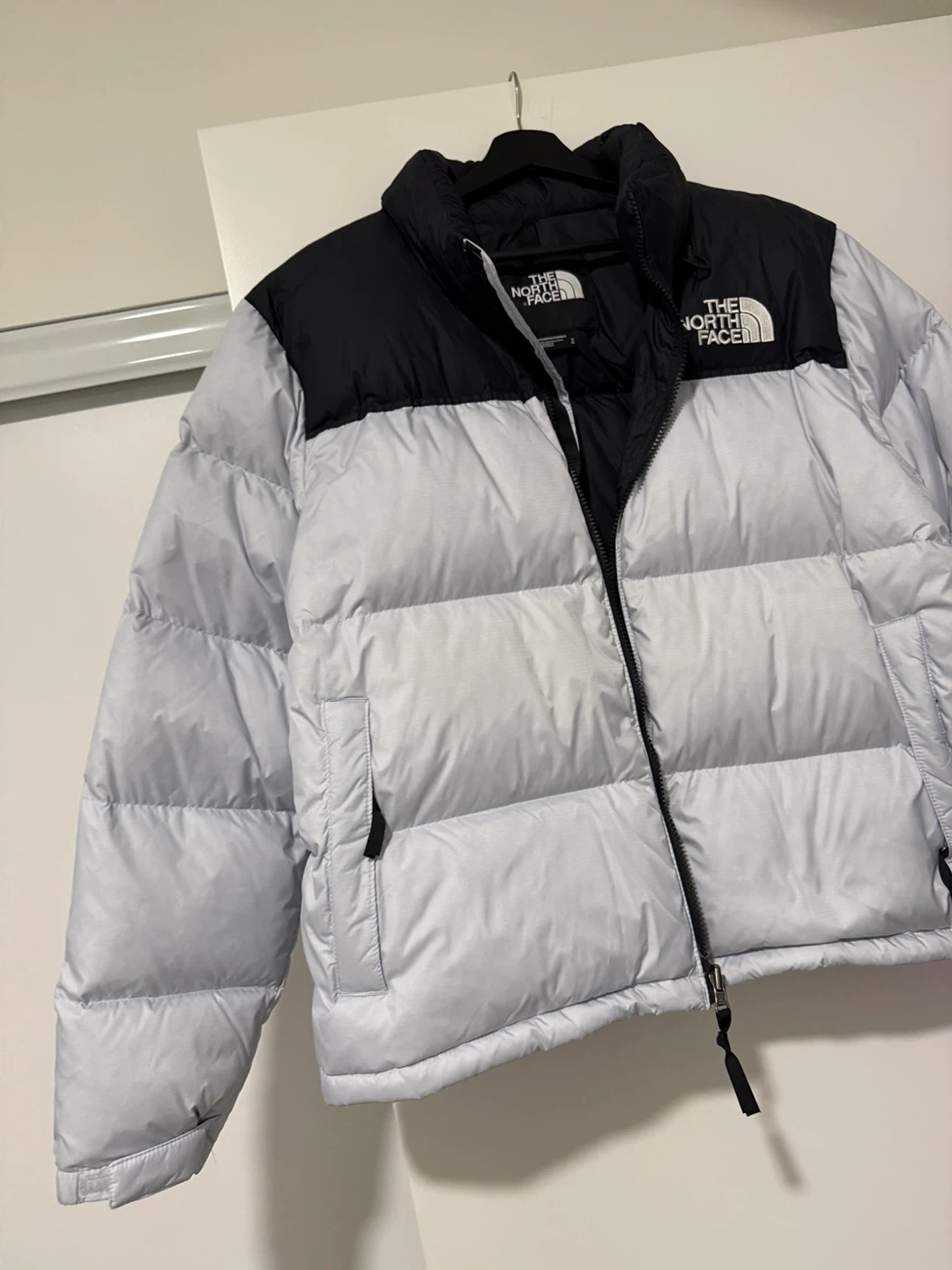 Selling a The North Face puffer jacket in excellent condition! It's a women's size 1Xl.The jacket is light blue and black. Perfect for staying warm during the colder months!