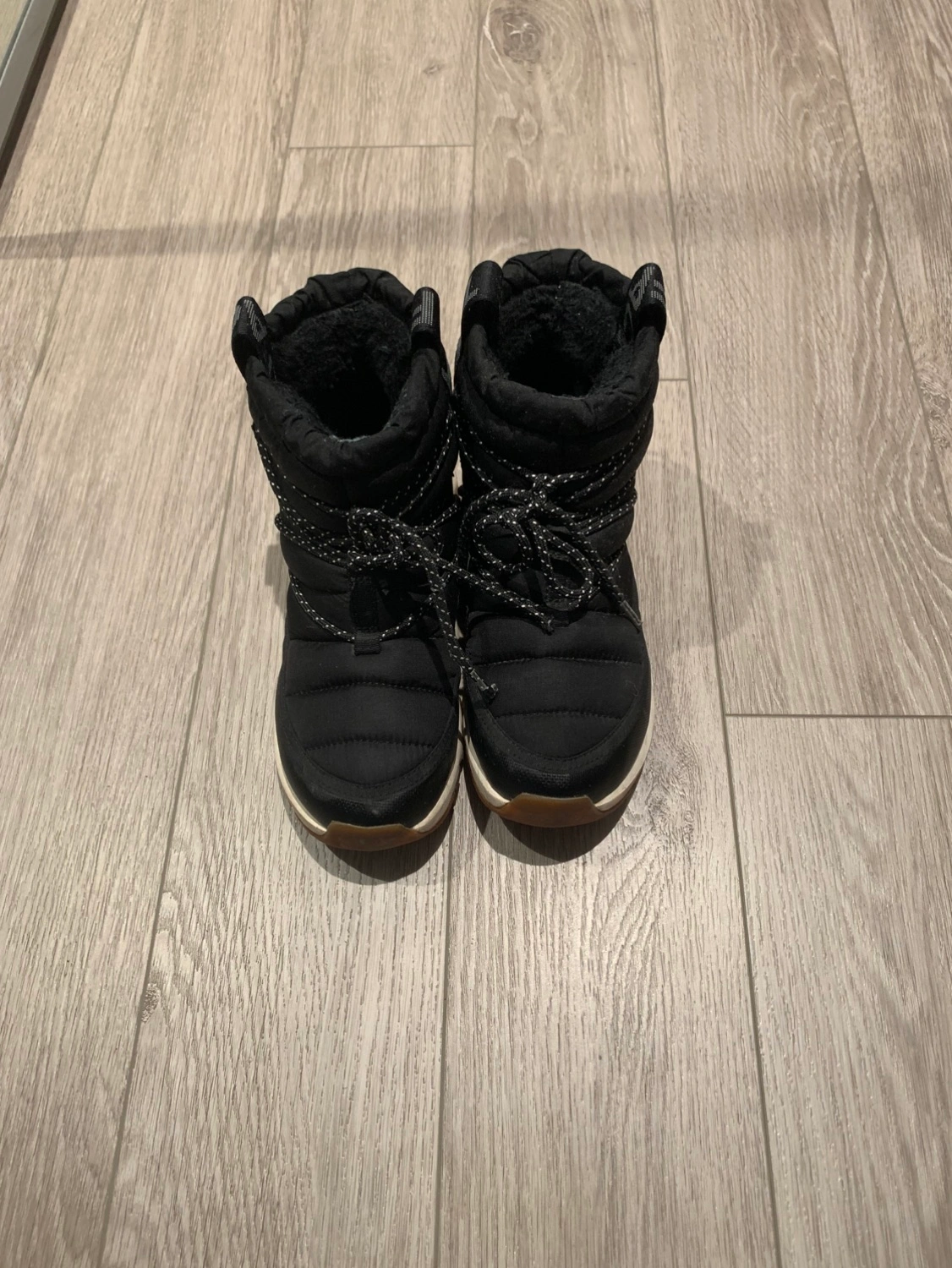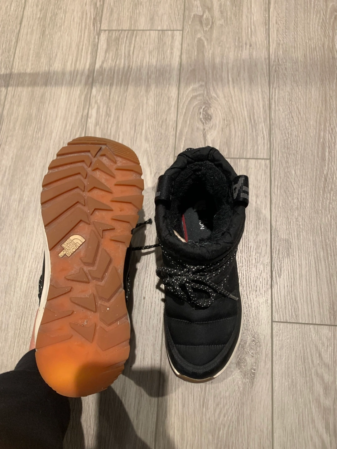 The North Face women winter boots Waterproof Still really warm in winter Rubber grip still good Prefer for those who need a warm winter boots Size: 7 US Color: Black / White Pick up and cash only
