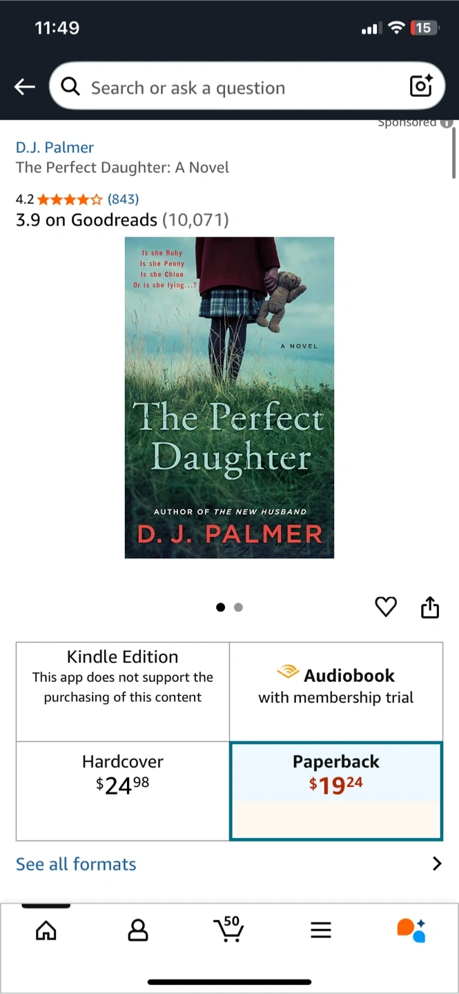Selling a paperback copy of "The Perfect Daughter: A Novel" by D.J. Palmer. Originally listed for $19.24!