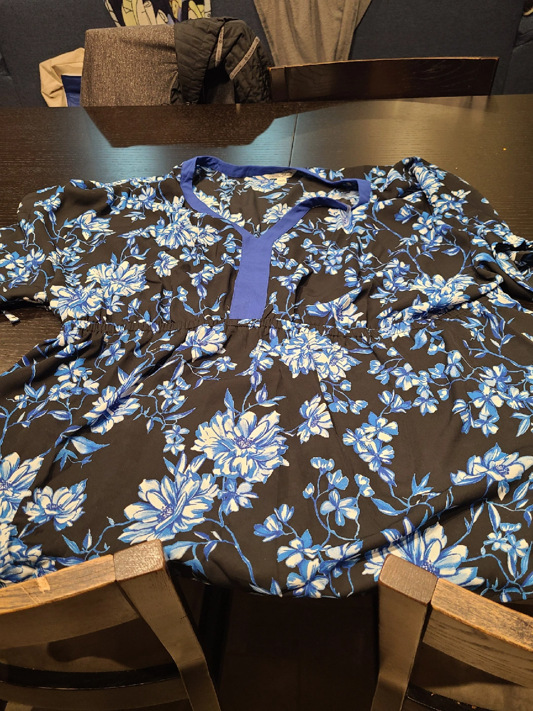 10Selling a beautiful floral blouse from The Pioneer Woman! It's a size XXXXL and the colour is Blue Indigo. It's in great condition and ready for a new home!