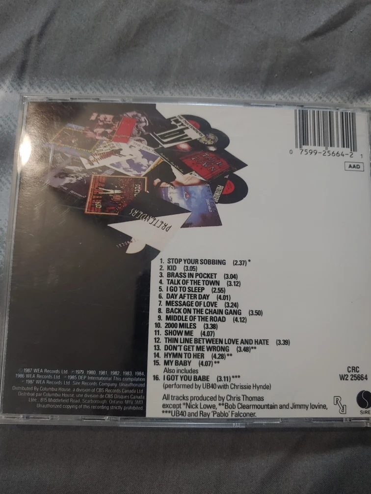 Selling The Pretenders' 'The Singles' CD. It's in good condition and ready to play all your favourite hits! Includes tracks like 'Stop Your Sobbing' and 'Kid'