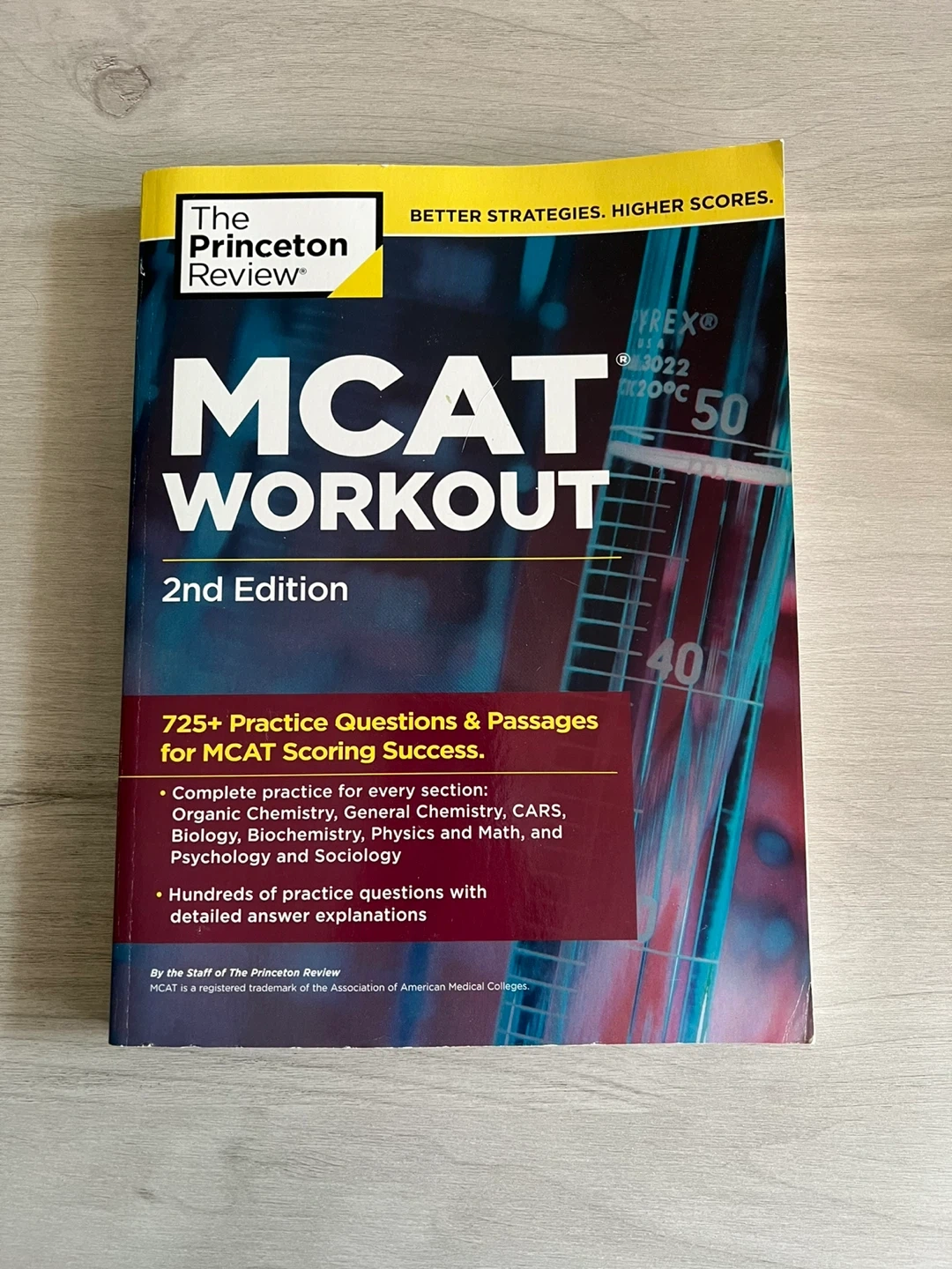 Selling The Princeton Review MCAT Workout, 2nd Edition! This book is great for practicing for the MCAT. It includes 725+ practice questions and passages for MCAT scoring success. Complete practice for every section: Organic Chemistry, General Chemistry, CARS, Biology, Biochemistry, Physics and Math, and Psychology and Sociology. There are also hundreds of practice questions with detailed answer explanations