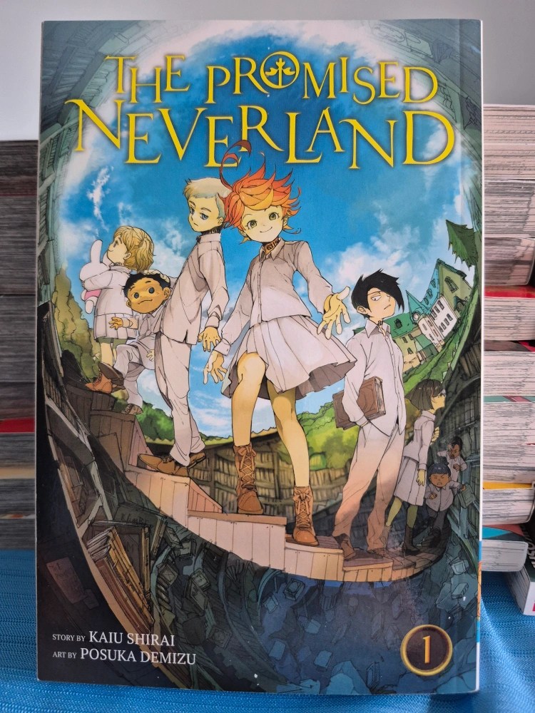 Selling Volume 1 of The Promised Neverland manga series! It's a captivating story written by Kaiu Shirai and illustrated by Posuka Demizu. Perfect for manga enthusiasts and collectors!