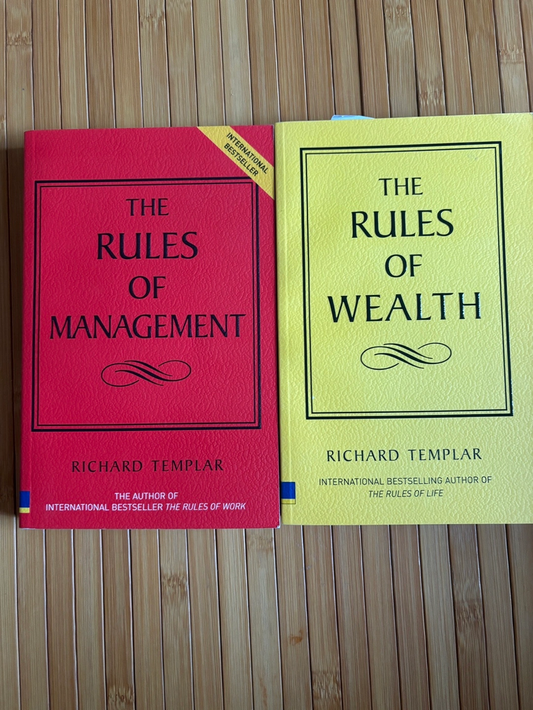 Two books by Richard Templar. One is titled The Rules of Management and the other is titled The Rules of Wealth.