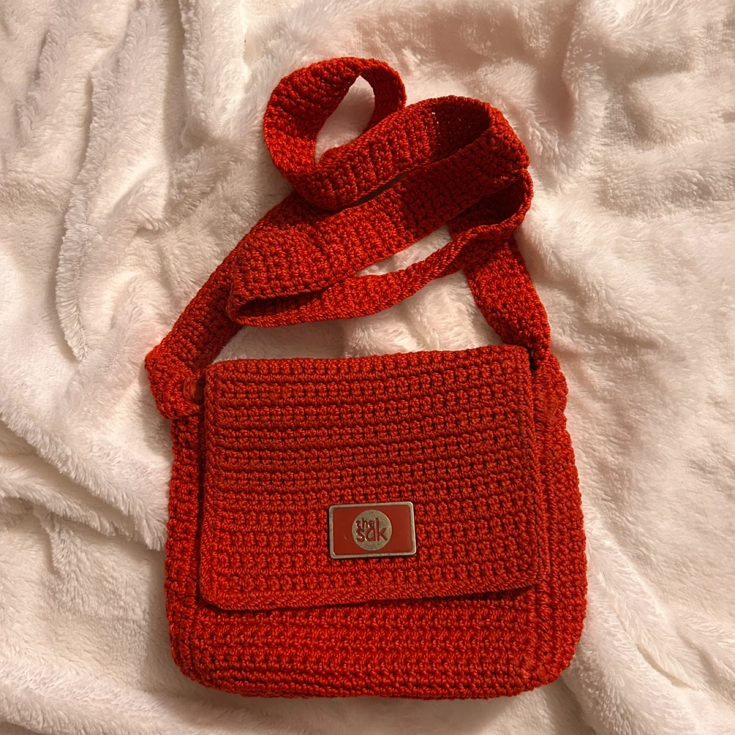 Stylish burnt orange crochet shoulder bag. Add a pop of color to your outfit with this chic accessory. Measures 8” x 7” x 2.5” and in excellent condition.