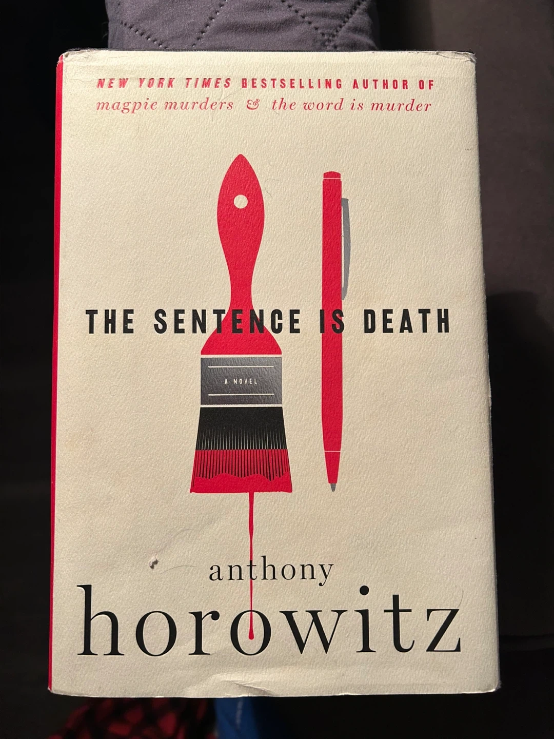 5Selling the novel 'The Sentence Is Death' by Anthony Horowitz. It's part of the series that also includes 'Magpie Murders' and 'The Word Is Murder'. A great read for mystery lovers!