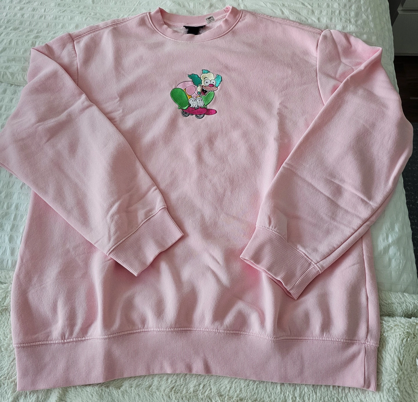~ IN THE SOUTH SURREY/WHITE ROCK AREA ~ New "The Simpsons" H&M, Relaxed Fit "Krusty The Clown" Light Pink Long Sleeved Sweatshirt. ~ "Krusty Embroidered" Patch is Light pink/Turquoise/Green/White. ~ Men's or Women's. ~ Cotton 60%, Polyester 40% ~ Top in sweatshirt fabric with a soft brushed inside. Relaxed fit with a round, rib-trimmed neckline, dropped shoulders, long sleeves and ribbing at the cuffs and hem. ~ Size L ~ In great clean, condition!!! ~ No tax to pay or shipping ~ Cash Only & you pick up. ~ Serious Buyers & No Low Ballers please. *** NOTE *** Please see my other listings as I am currently selling many household items such as Queen Size Pillow Cases and Duvet Covers, Backpacks, Bathroom Mats, Duffle Bags, Suitcases, Shoe Storage, Lots of various sizes of BRAND New Picture Frames and also BRAND NEW, NEVER WORN SNEAKERS etc.