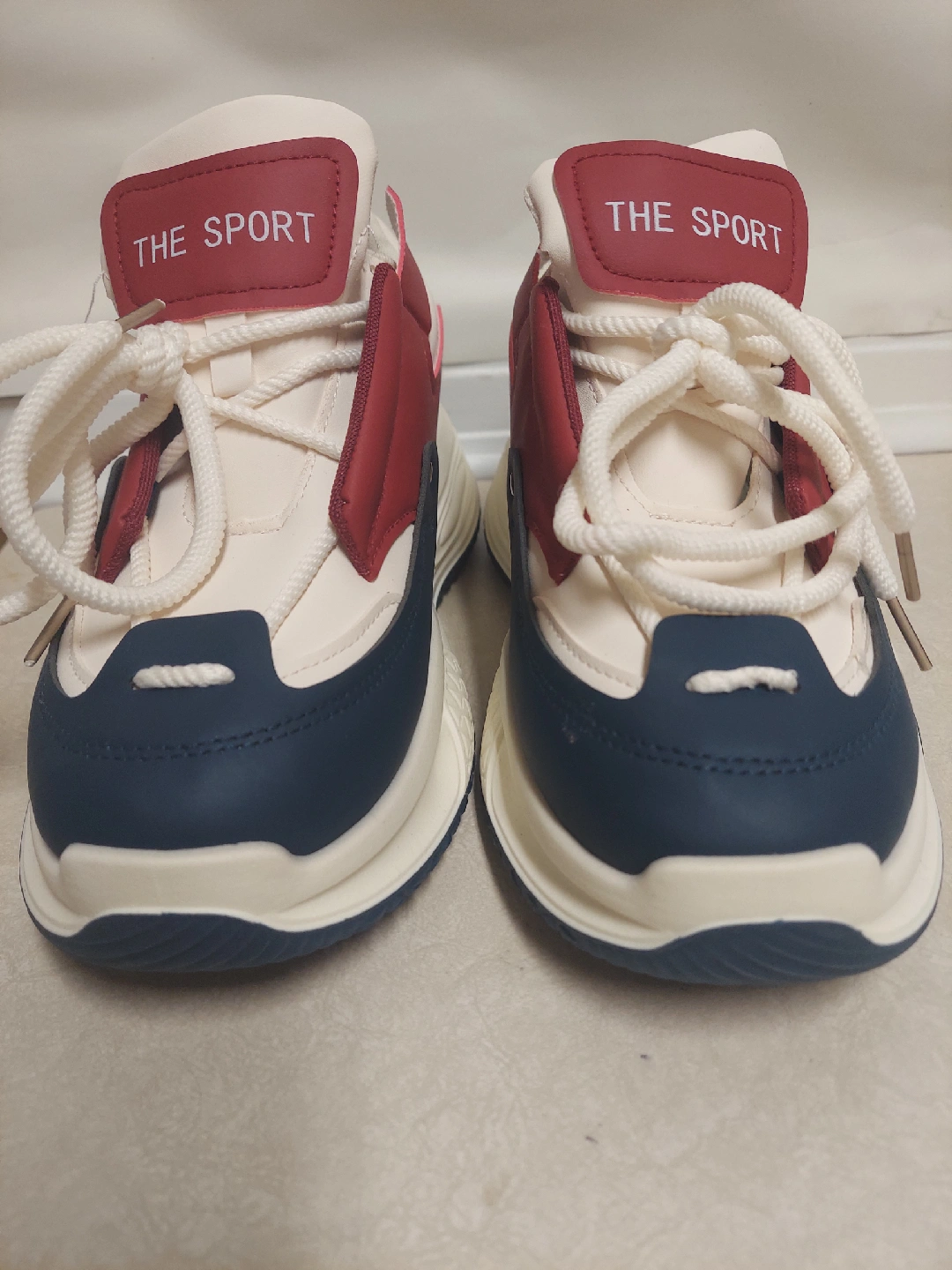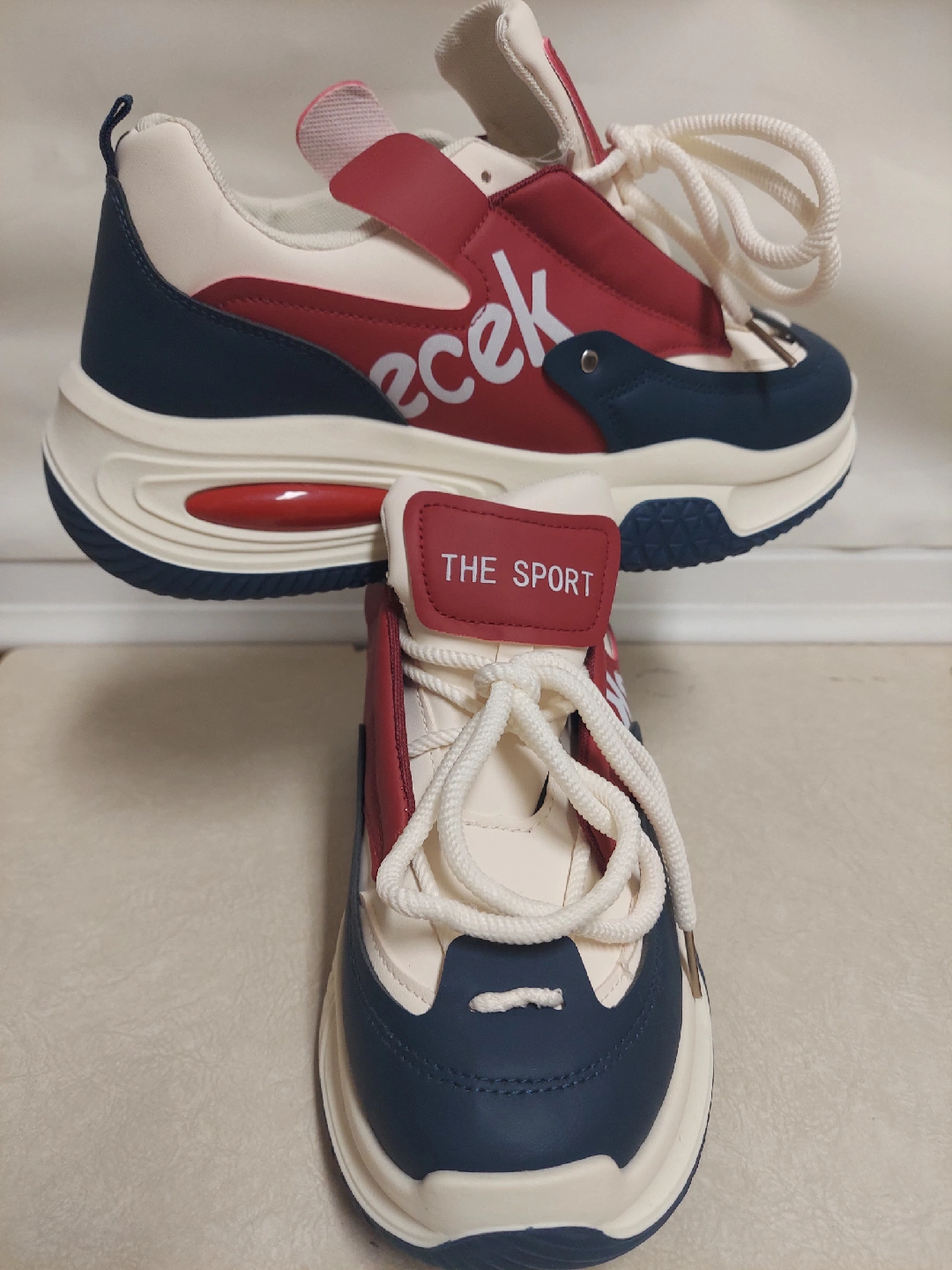 These colour block sneakers are in great condition and ready for a new home! They feature a unique design with red, white, and navy blue accents, making them a stylish choice for everyday wear