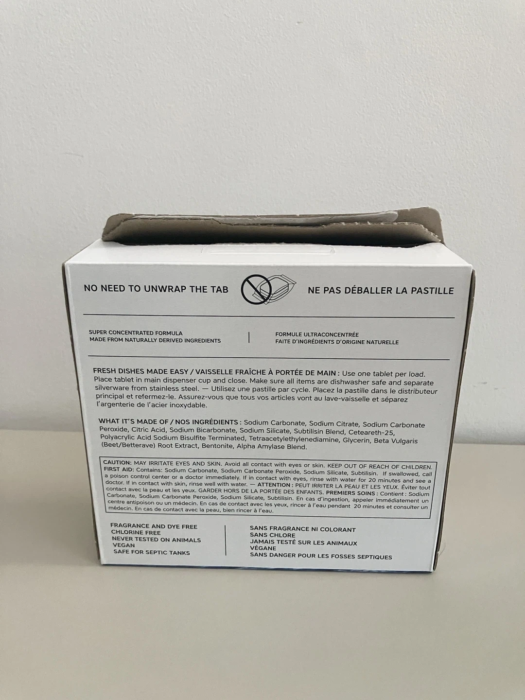 139Selling a box of The Unscented Company dishwasher tabs. Just tried 1. The box still contains 29 tabs.