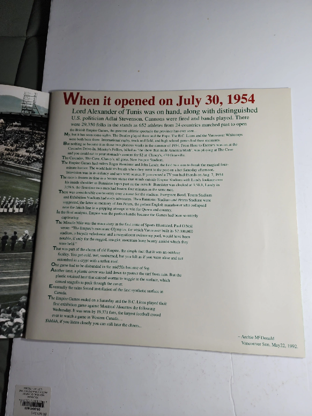 Selling "The Vancouver Sun Presents Empire Stadium Scrapbook". It's a collection of stadium stories and memorabilia from the Vancouver Sun. A great piece of local history!