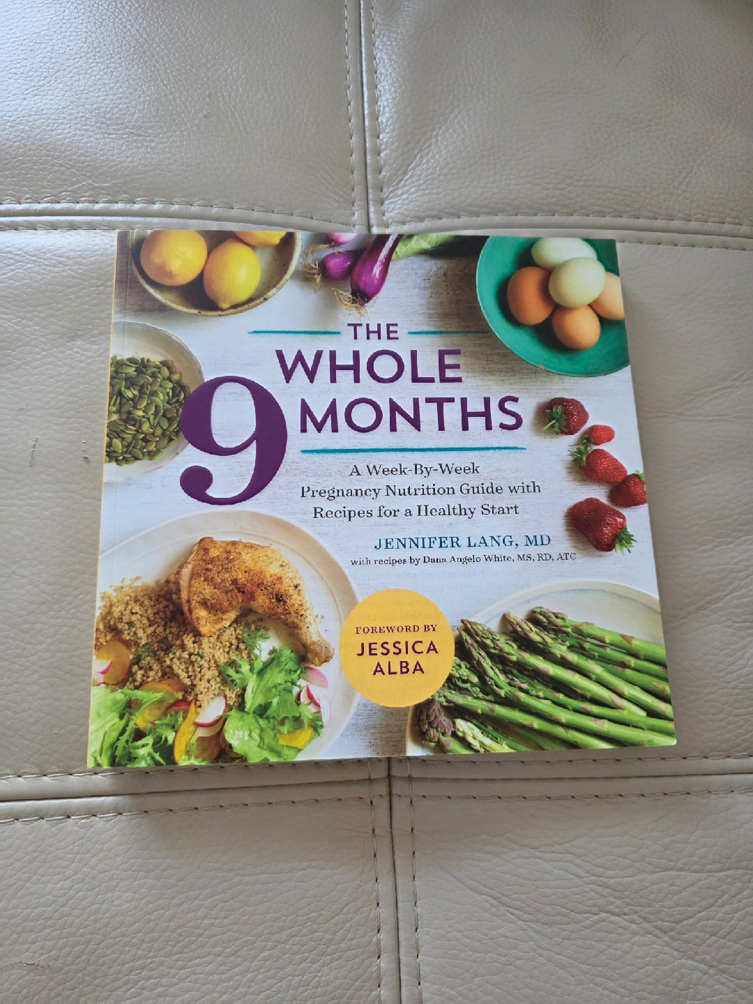 Selling "The Whole 9 Months: A Week-By-Week Pregnancy Nutrition Guide with Recipes for a Healthy Start" by Jennifer Lang, MD. It also includes recipes by Dana Angelo White and a foreword by Jessica Alba