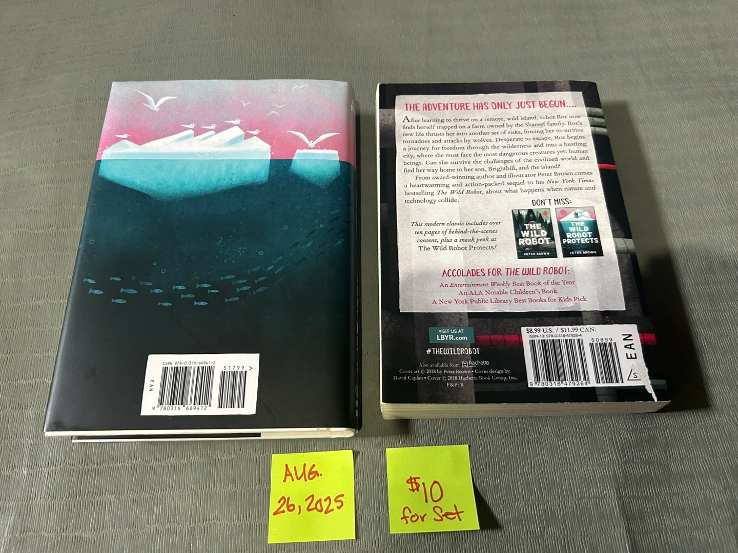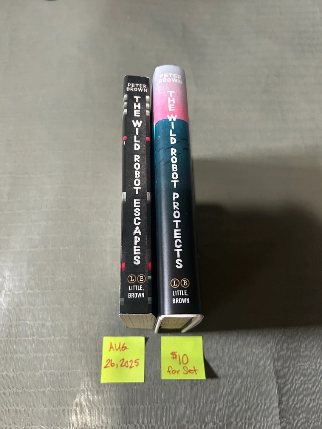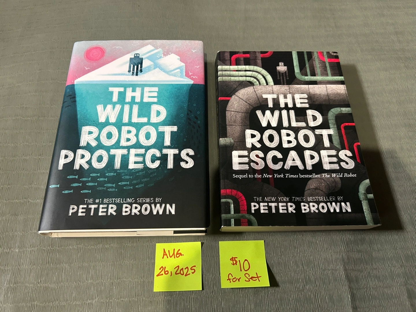 Selling as a set 'The Wild Robot Escapes' (Book 2) 'The Wild Robot Protects' (Book 3) These books are part of the Peter Brown’s #1 bestselling series. Can porch pick up or drop off within certain boundaries.